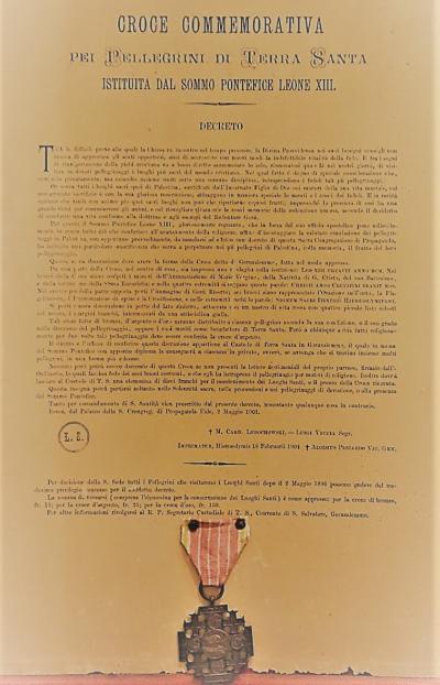 כבוד דתי זה החל על ידי האפיפיור ליאו ה-13 בשנת 1900 ולכן הוא מכונה הכבוד של האפיפיור ליאו ה-13 או הצלב של ליאו. המדליה, שבמאה שעברה ליוותה והגנה את עולי הרגל במסען הבייתה מארצו של ישוע, מהווה עדיים סימבול חשוב של דבקות ושל כבוד של המקומות הקדושים של היום.