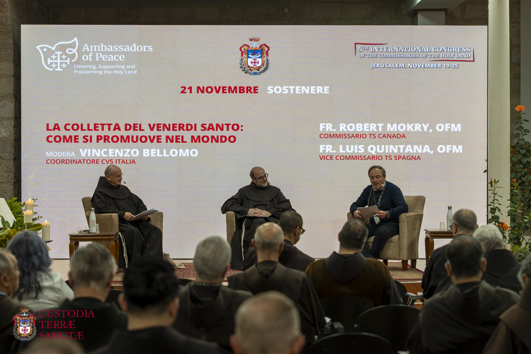 The day of November 21 opens with a verb that does not leave one indifferent: to sustain. It is the second chapter of the journey of the Congress of the Commissaries, as Fr. Matteo Brena recalls, introducing the morning session. To sustain does not only mean to act, but first of all to listen, to understand the reality of the works, of the communities, of the families and of the friars who live daily in the Holy Land.