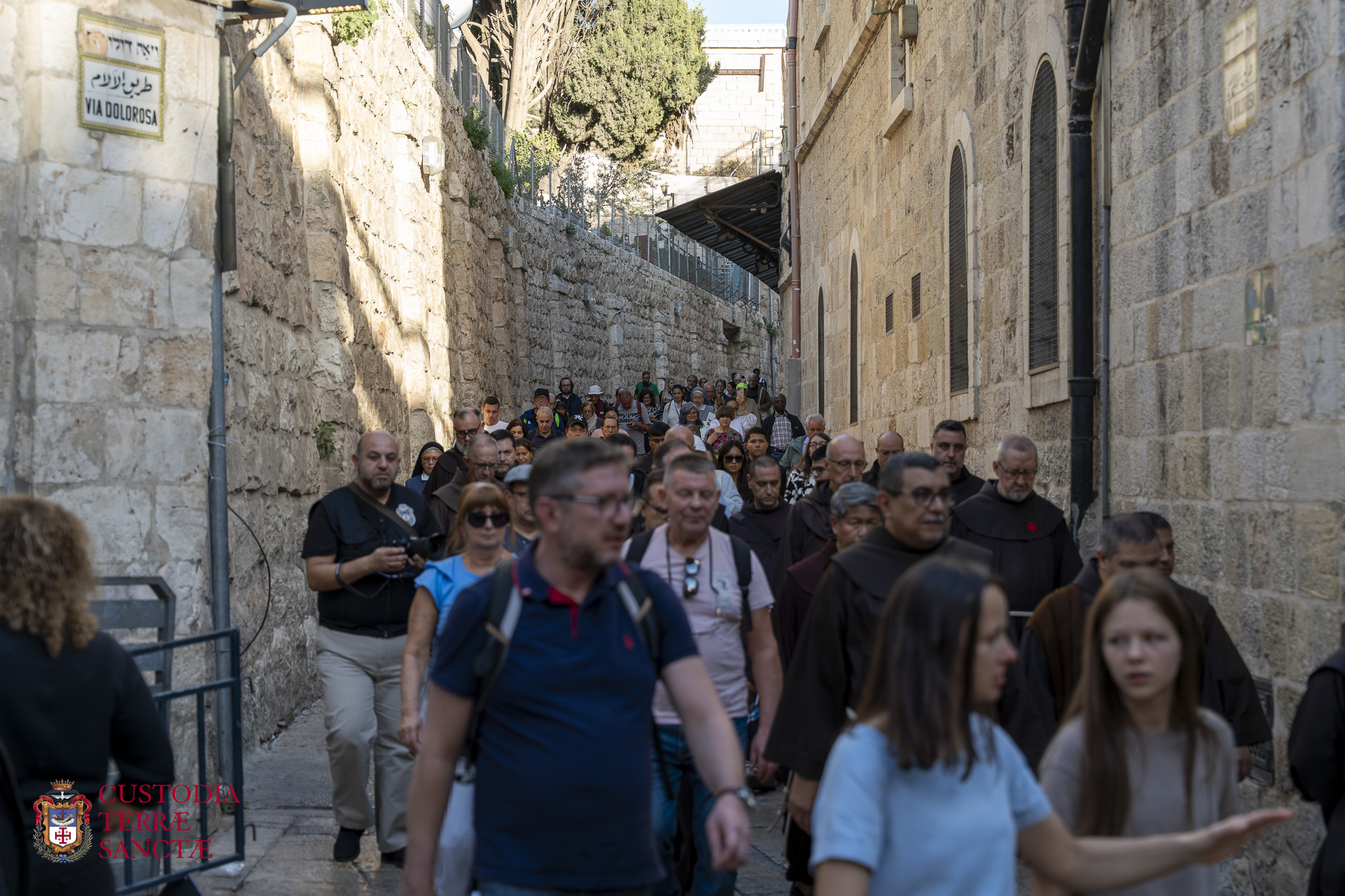 In the early afternoon, after the community lunch, the Commissaries gathered together with the custos to celebrate the Way of the Cross through the streets of Jerusalem. They walked on those same stones, in the same alleys that saw Jesus pass on the day of his Passion. Every step, every stop along the Via Dolorosa was a return to that ancient path, an immersion in the living memory of the city.