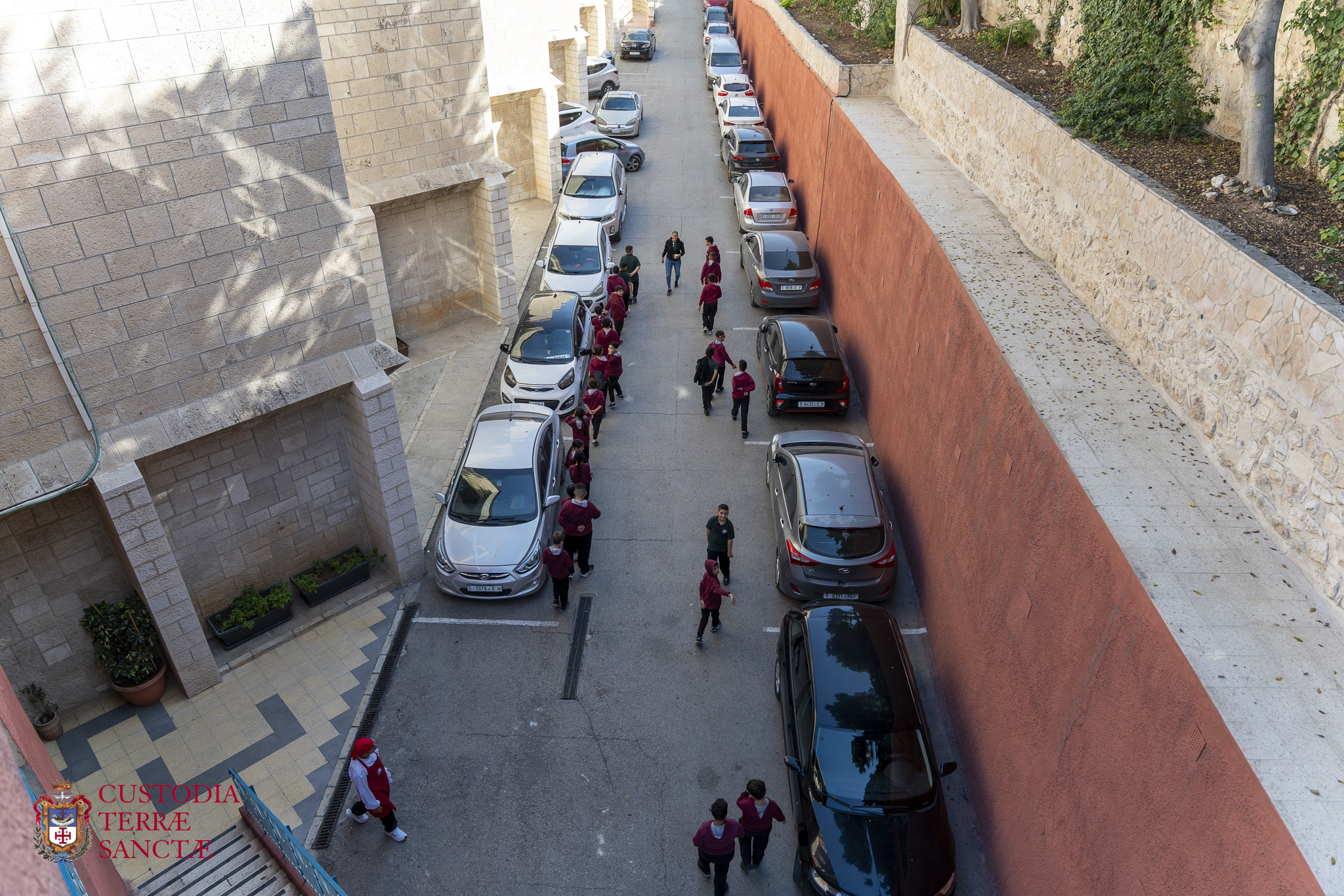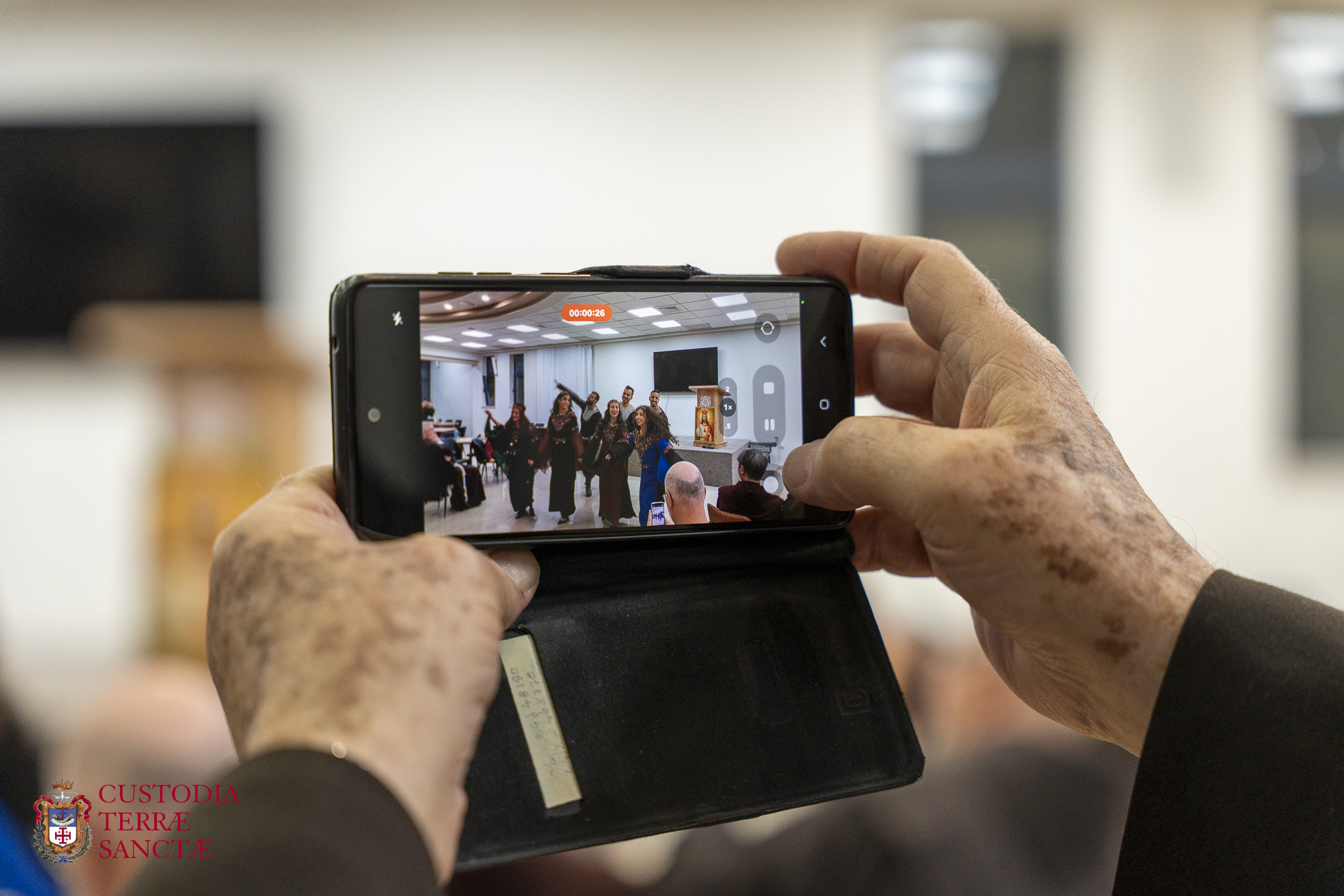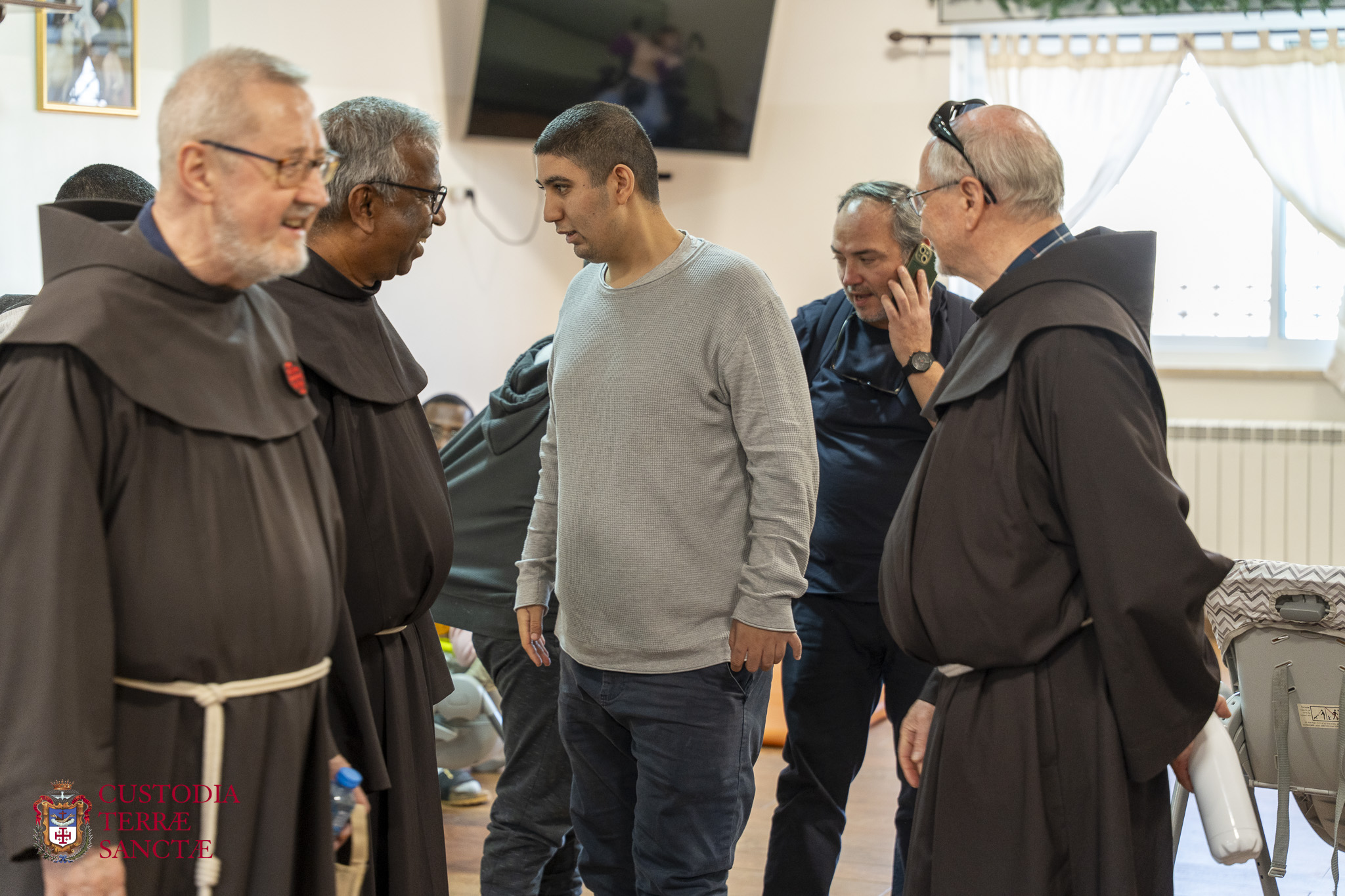 The commissaries’ day was intense. It opened with the celebration at the Shepherds’ Field, in Beit Sahour, in the Croatian chapel. Then the visit to the Terra Santa College, guided by Fr. George Haddad, and finally the procession to the Grotto of the Nativity. In the afternoon, the visits to local realities, to Hogar Niño Dios, the family home for disabled children, continued along the historic Star Street, the road walked by pilgrims, custos and patriarchs, up to the “Catholic Action” center, the social and family heart of the Christian community.