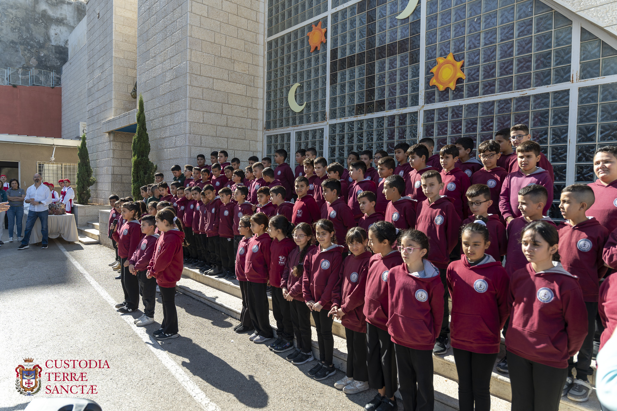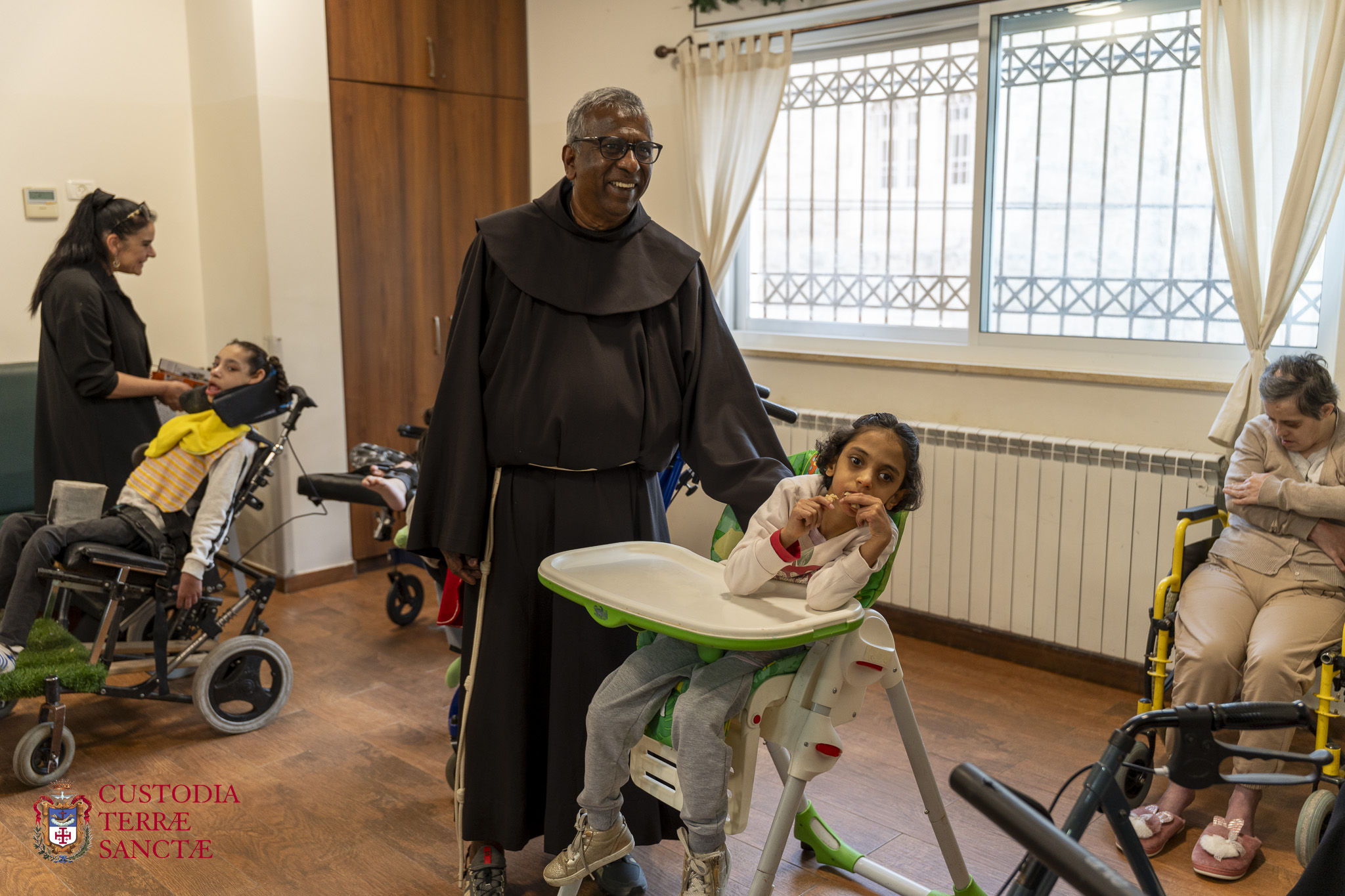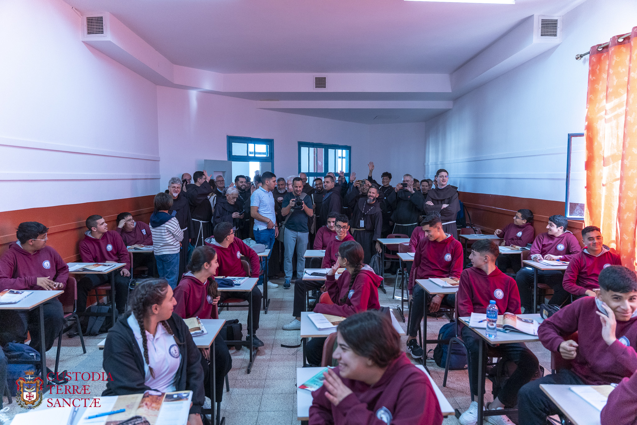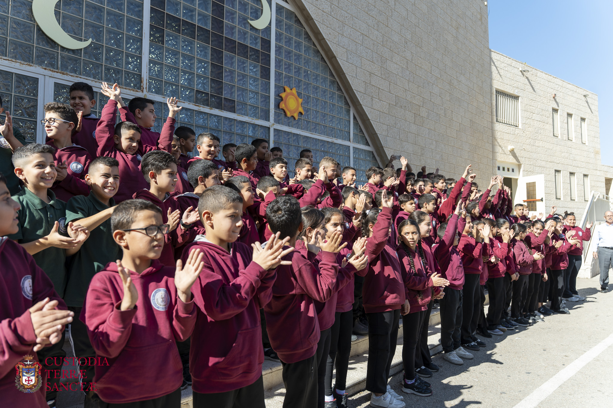The commissaries’ day was intense. It opened with the celebration at the Shepherds’ Field, in Beit Sahour, in the Croatian chapel. Then the visit to the Terra Santa College, guided by Fr. George Haddad, and finally the procession to the Grotto of the Nativity. In the afternoon, the visits to local realities, to Hogar Niño Dios, the family home for disabled children, continued along the historic Star Street, the road walked by pilgrims, custos and patriarchs, up to the “Catholic Action” center, the social and family heart of the Christian community.