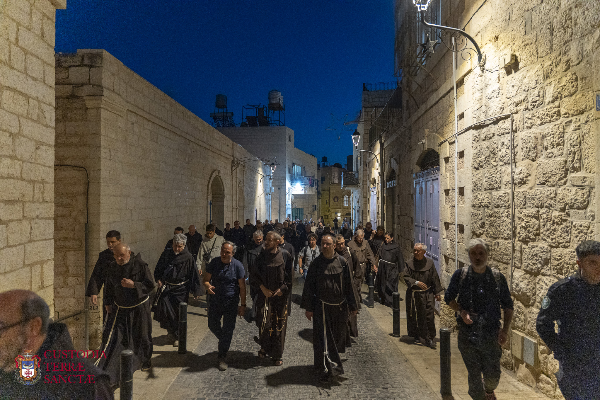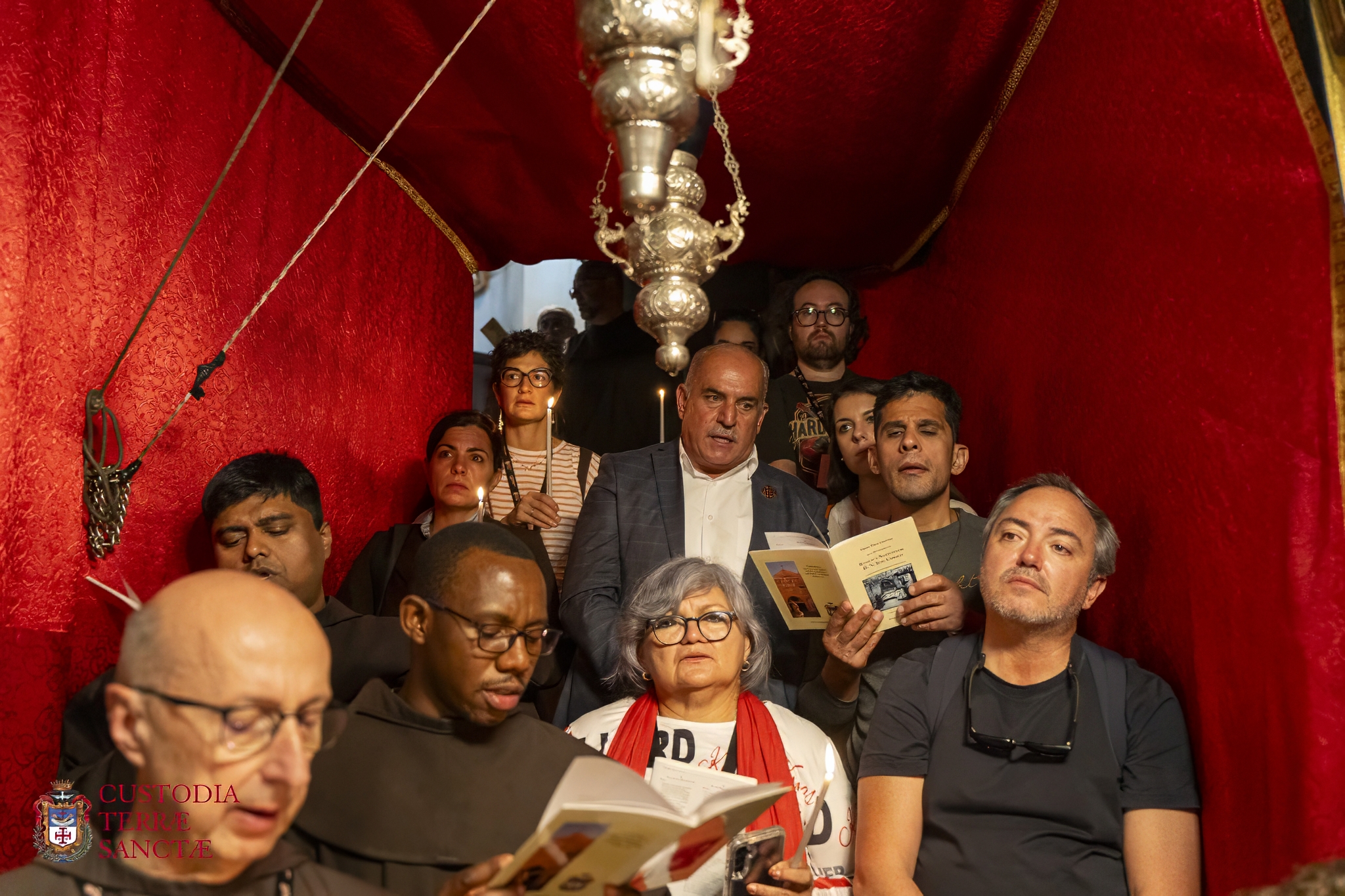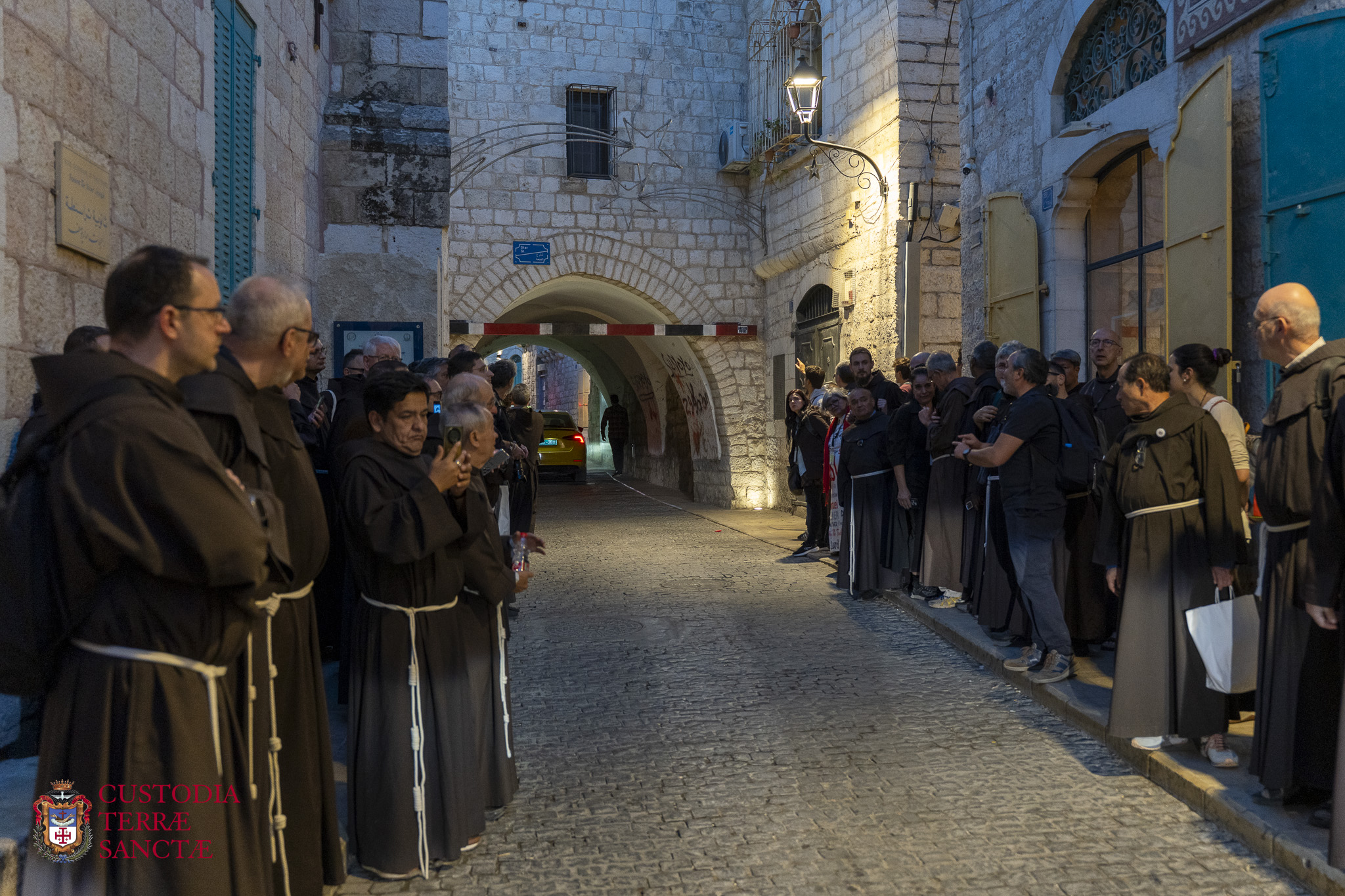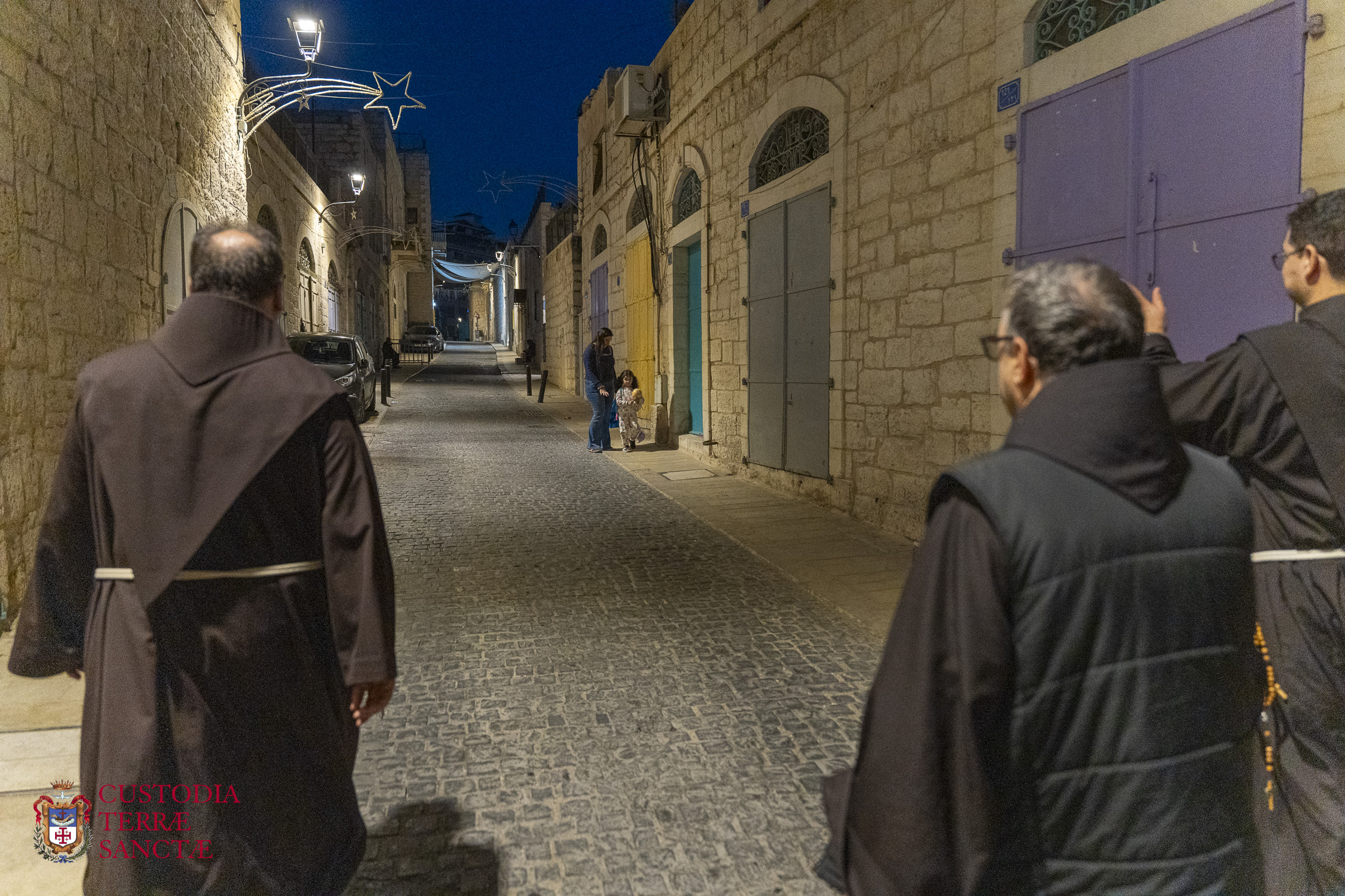 The friars walked in procession along the route from the Church of Saint Catherine, next to the Orthodox basilica that leads to the grotto. It was a moment of silence and recollection, the kiss to the star, the community prayer, the encounter with the place of birth.