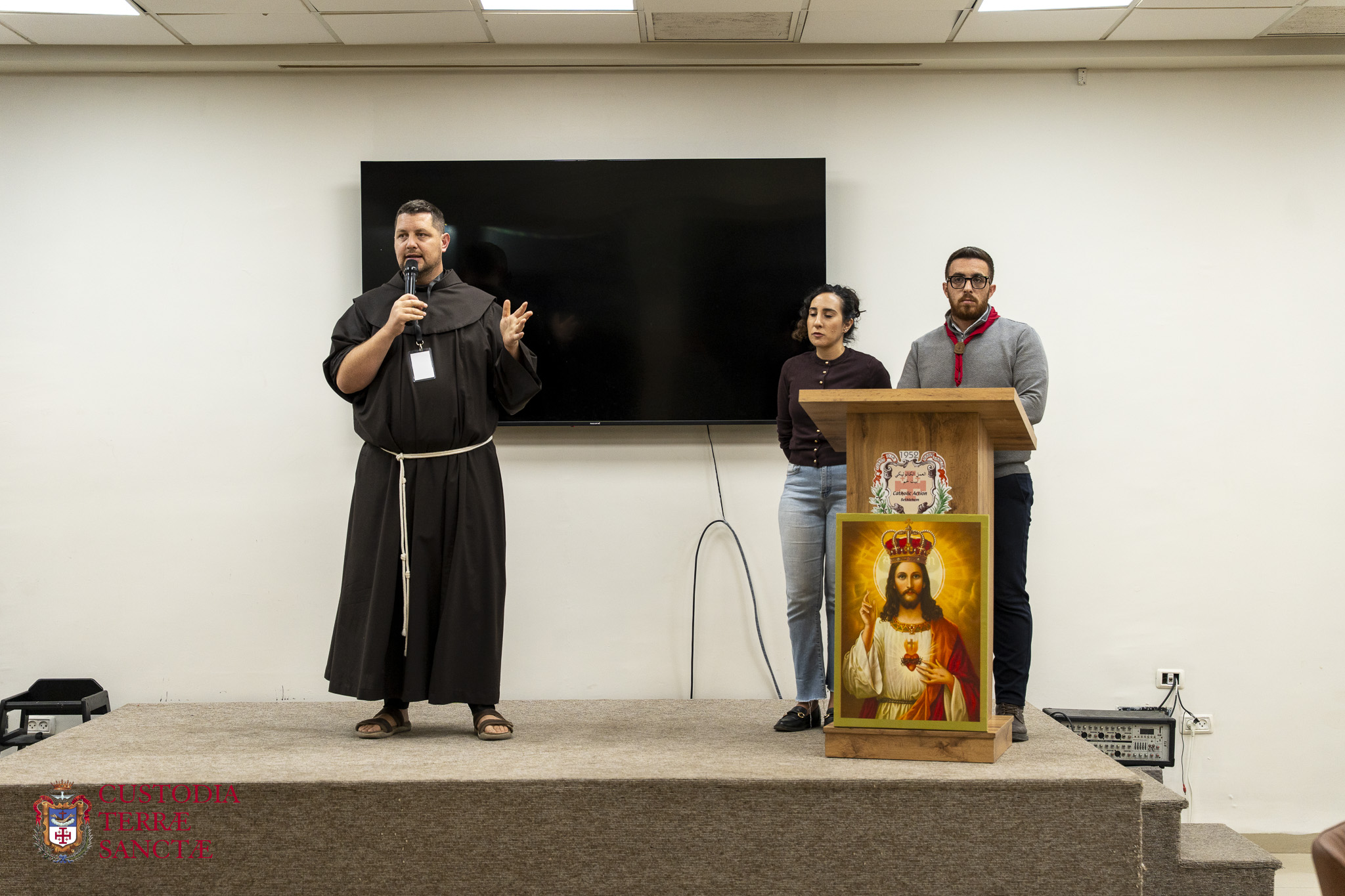 The final stop was the Catholic Action center of Bethlehem, a place where the community gathers, plays, practices sports, grows and prays. Fr. Sandro Tomasevic illustrated the numerous activities, such as the pool, the sports center, the playroom, the outdoor park and spaces for community meetings.