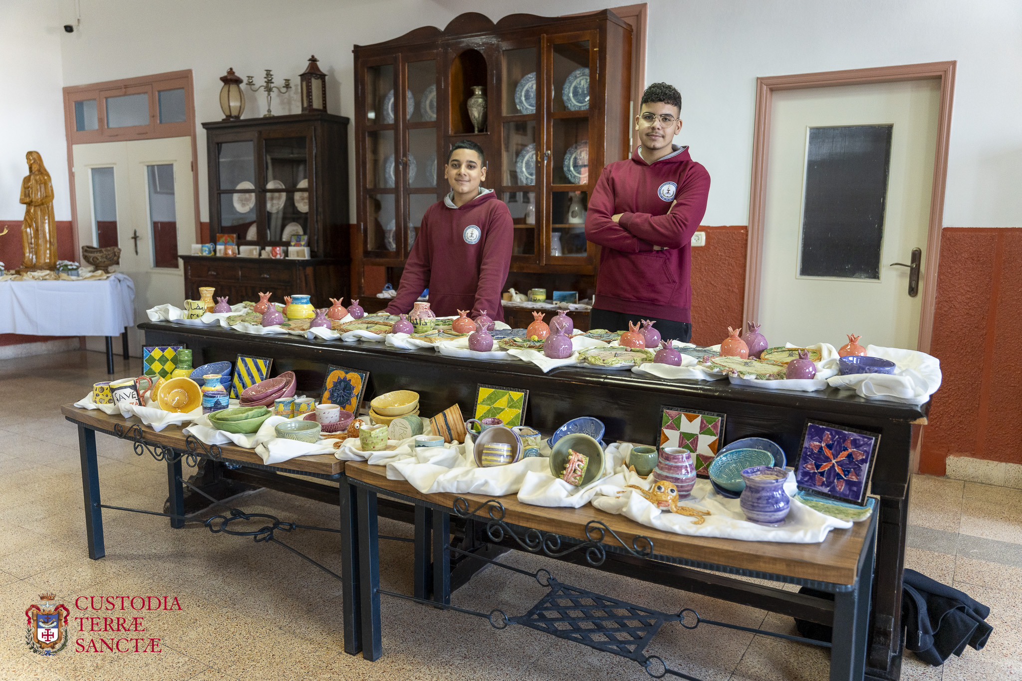 Some of the younger students wanted to joyfully honor the commissaries visiting, singing and playing several pieces for them. A sign of welcome, of joy in receiving the visit of new faces that have been missing from Bethlehem for so long. The students of the artistic program also wished to proudly show their artistic works, a sign of beauty that resists despite everything.