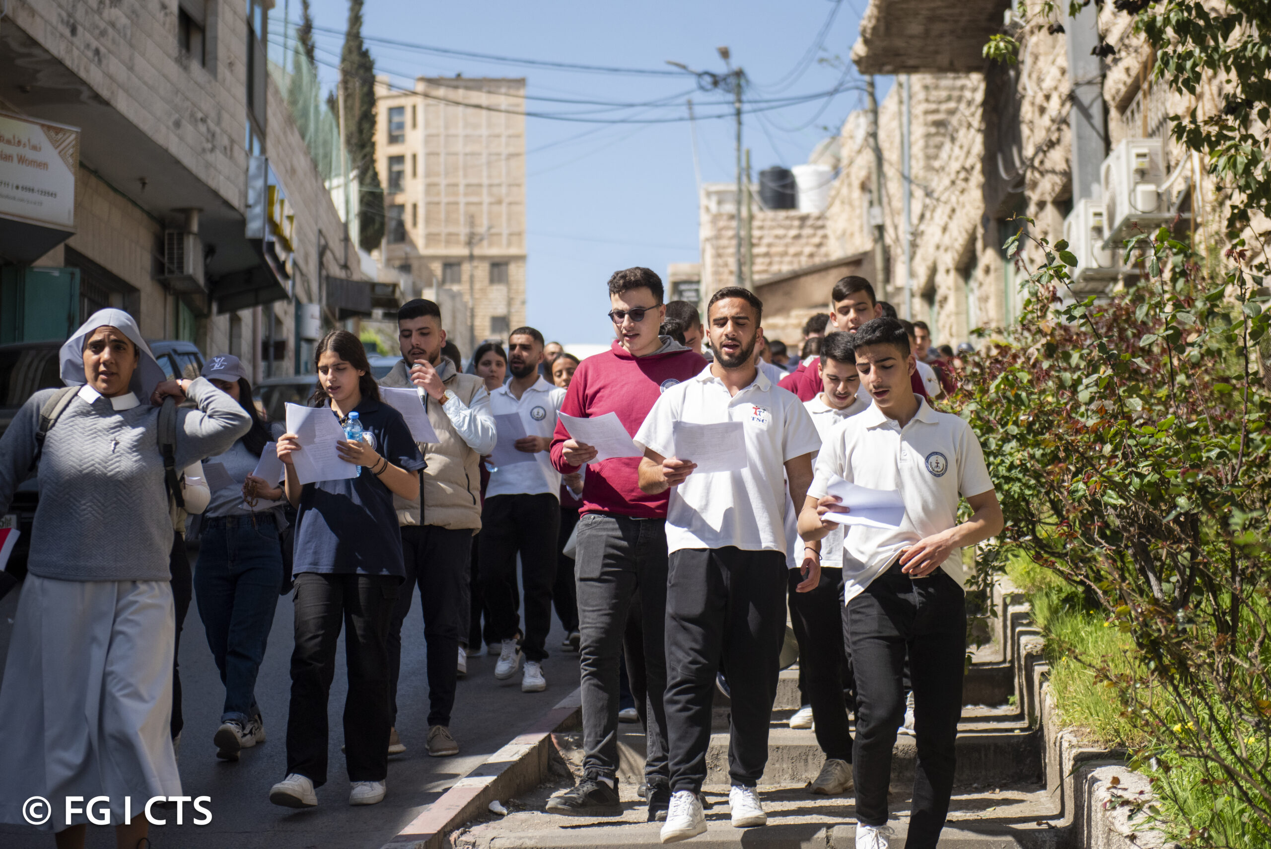 “This walk from the school to here  helps the youngsters rediscover once again the gift of being children of the Holy Land and being inhabitants of Bethlehem. We want to help them rediscover again this beauty, why so many people from outside want to be here while they, in their daily lives,  at times forget this privilege.