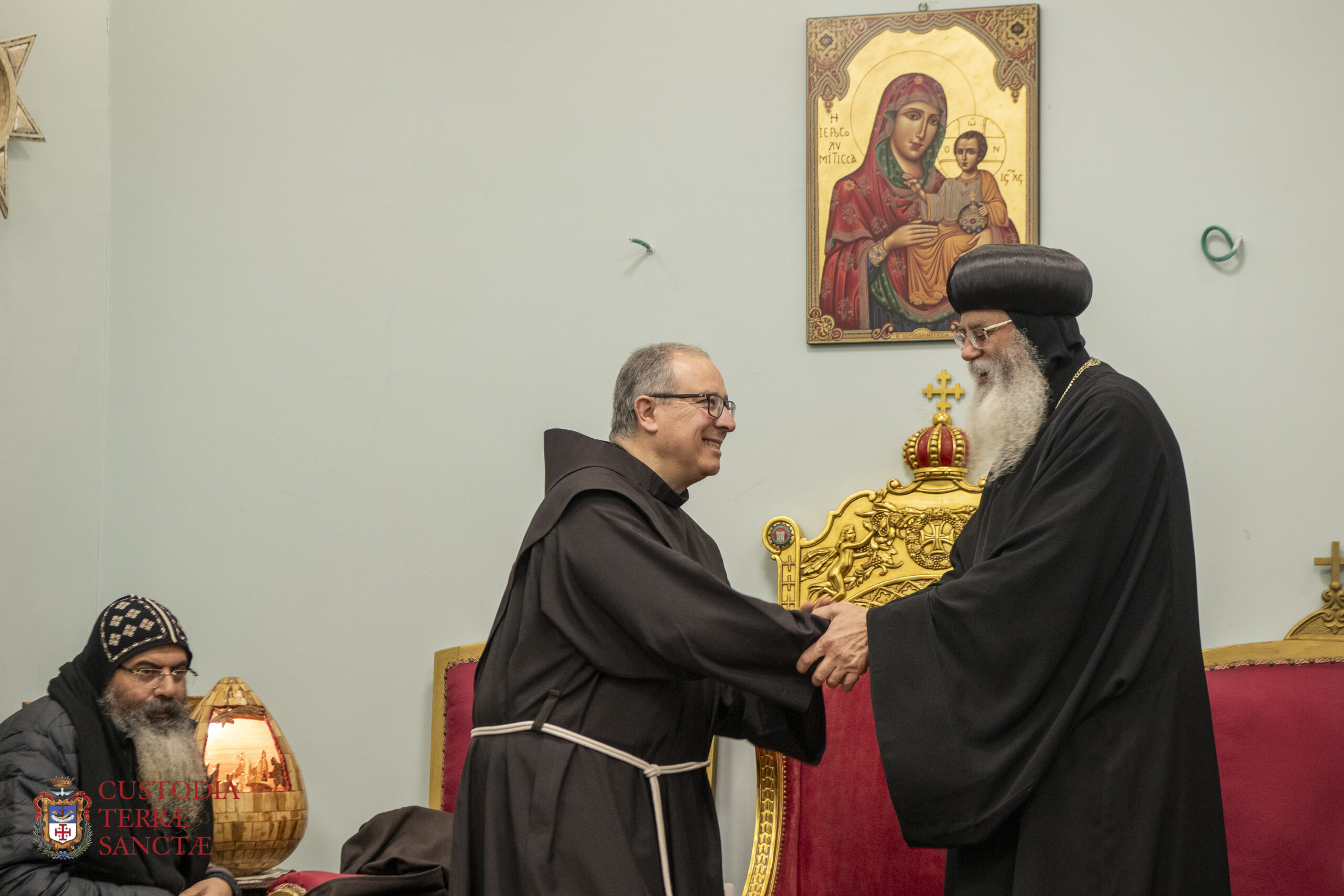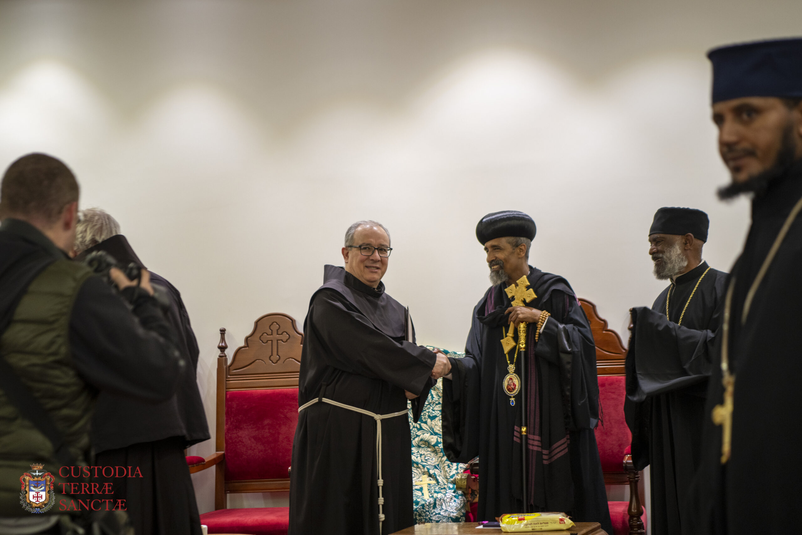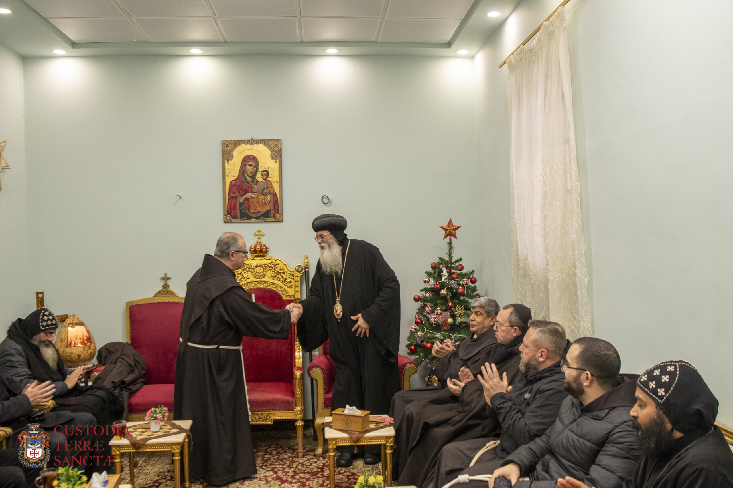 The Custos, accompanied by some confreres of the Custody of the Holy Land, paid visits to the headquarters of the Greek Orthodox Patriarchate, the Syriac Orthodox Patriarchate, the Coptic Orthodox Patriarchate, and the Ethiopian Orthodox Patriarchate, to share a moment of prayer and celebration in the full spirit of Christmas.