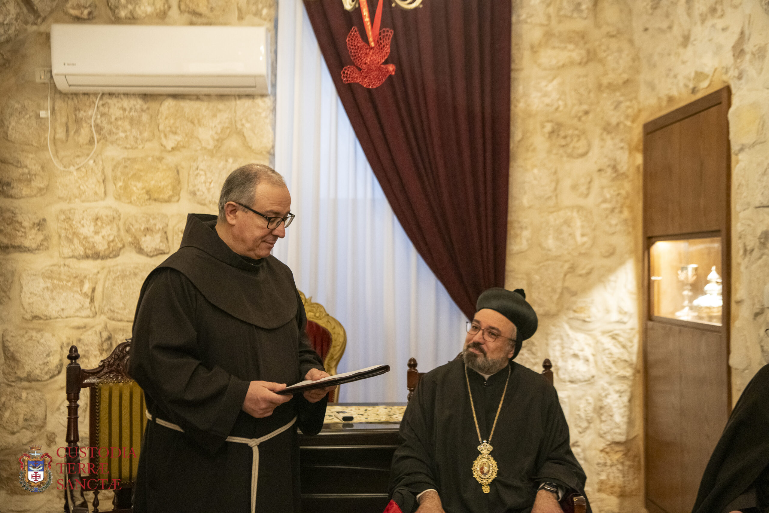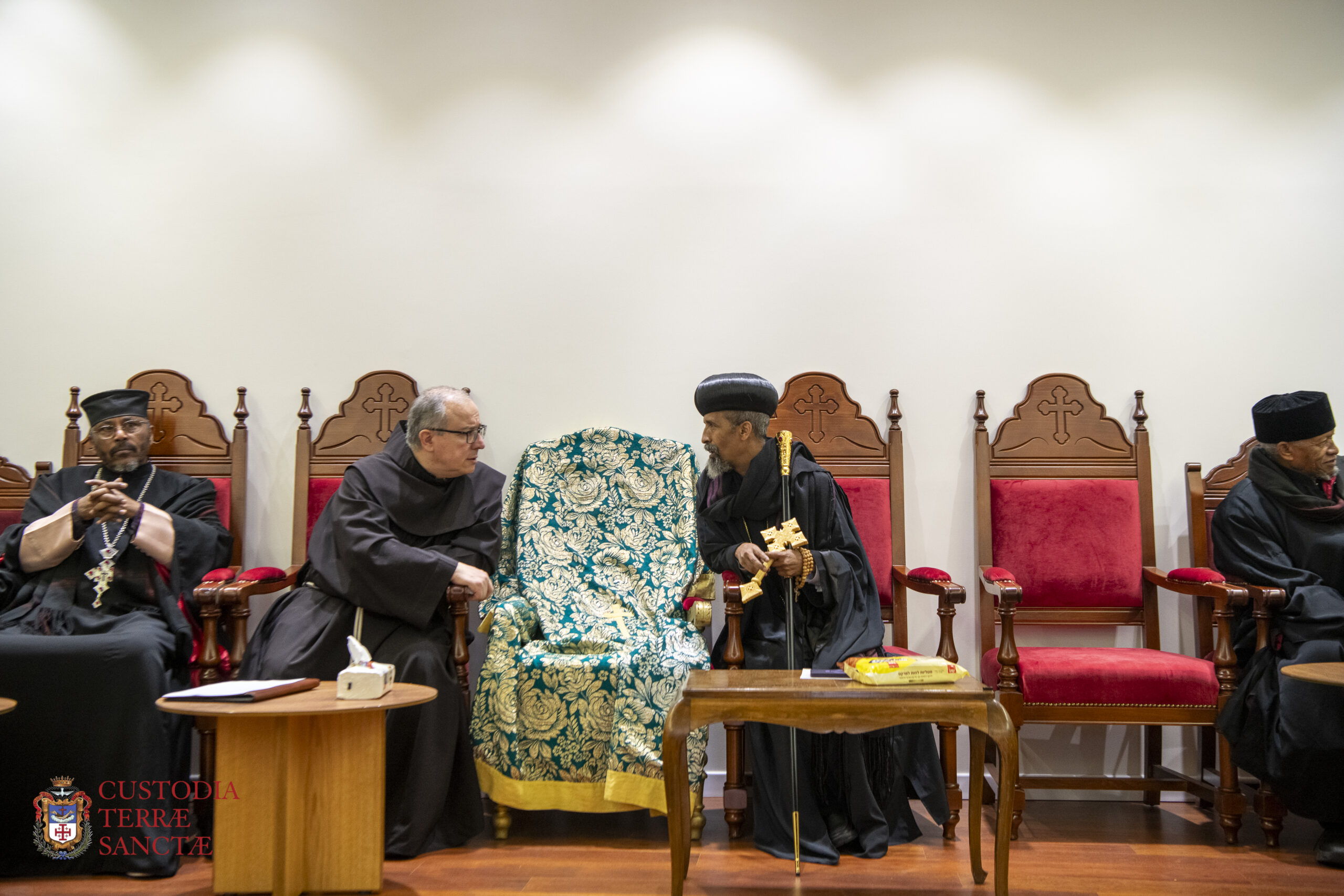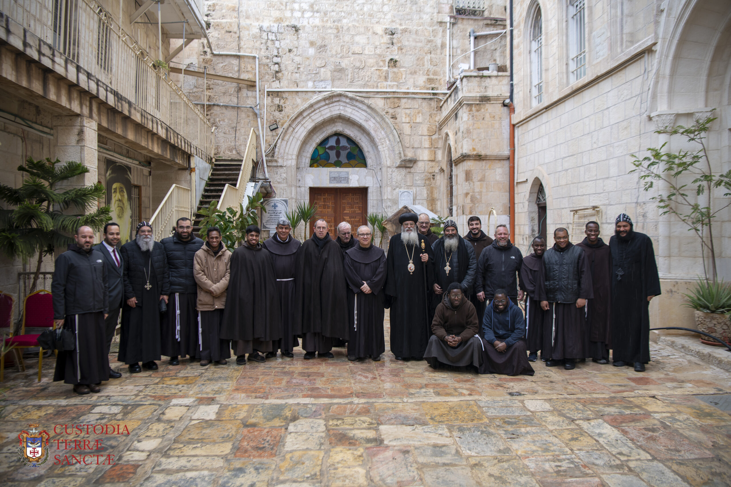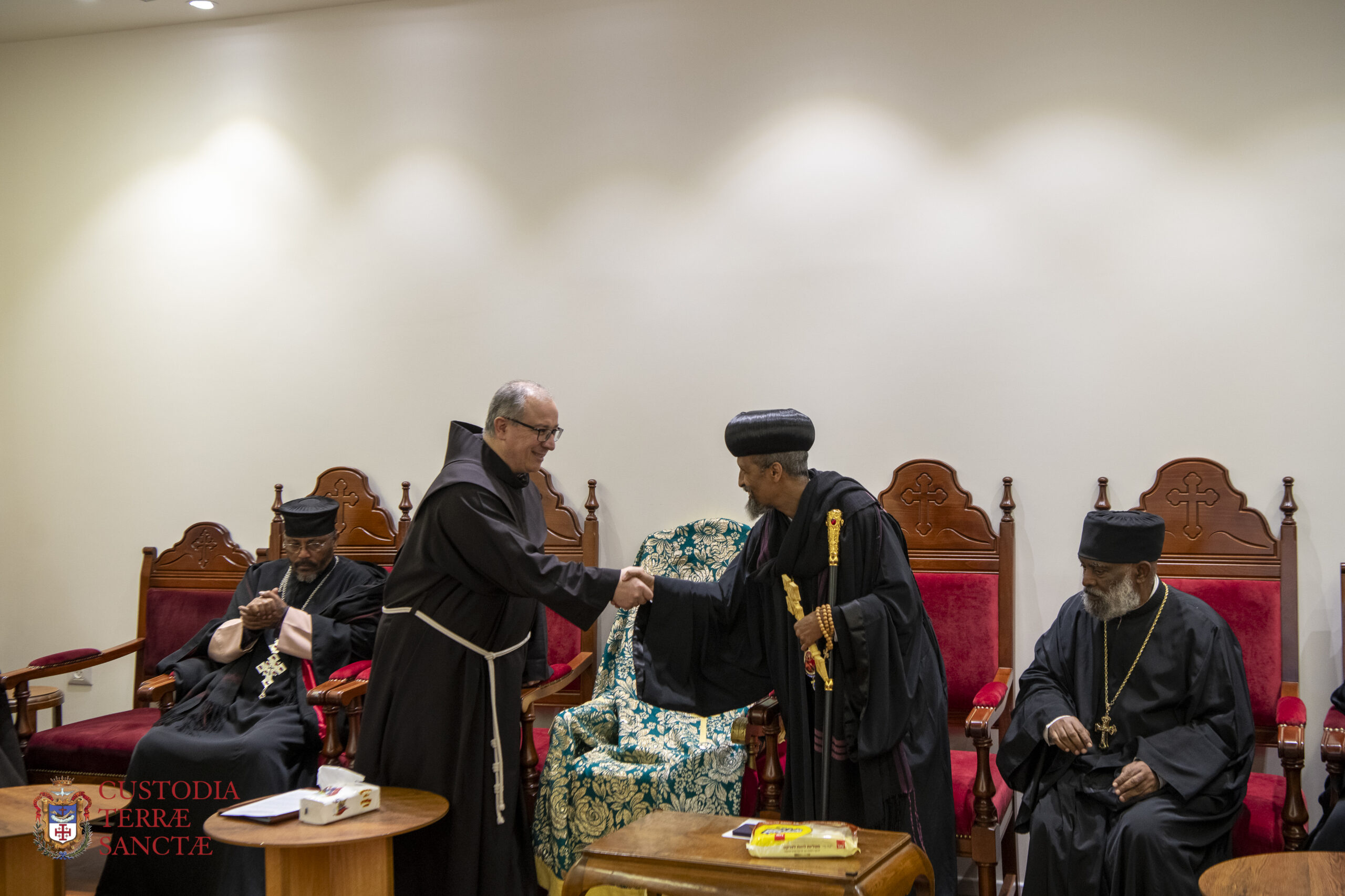The Custos, accompanied by some confreres of the Custody of the Holy Land, paid visits to the headquarters of the Greek Orthodox Patriarchate, the Syriac Orthodox Patriarchate, the Coptic Orthodox Patriarchate, and the Ethiopian Orthodox Patriarchate, to share a moment of prayer and celebration in the full spirit of Christmas.