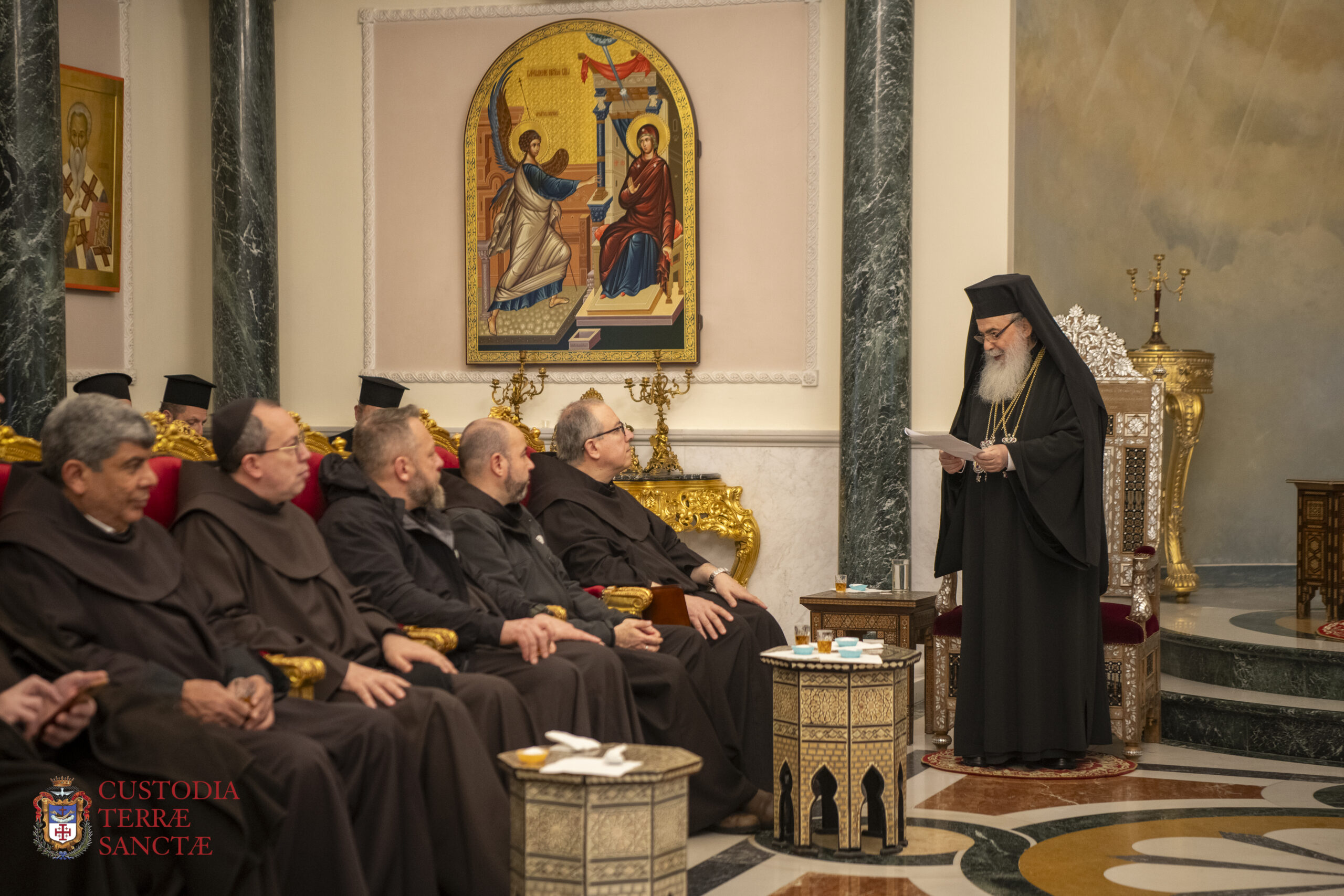 As is tradition, the Custos of the Holy Land, Fr. Francesco Ielpo, brought Christmas greetings to the Patriarchs and Heads of the Churches of Jerusalem, to rejoice together in the mystery of the birth of Jesus, which the Orthodox celebrate on January seven.
