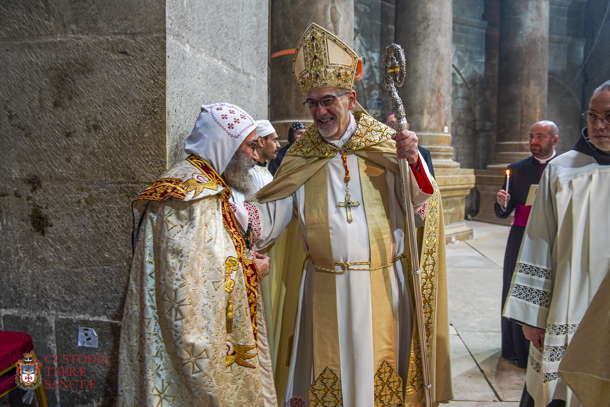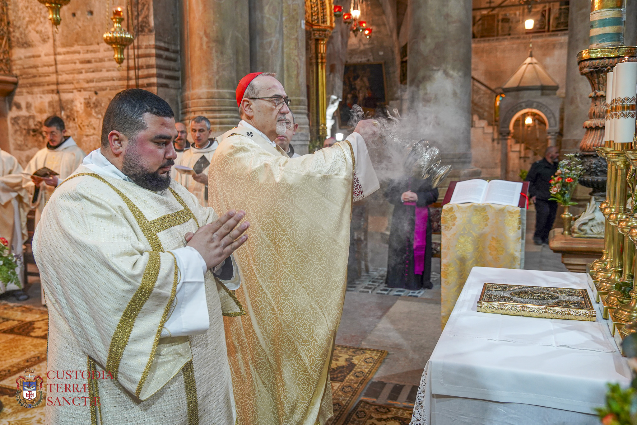 The restrictions imposed by the authorities prevented their participation, however, the new Apostolic Nuncio in Israel and Apostolic Delegate in Jerusalem and Palestine, Msgr. Giorgio Lingua, and his secretary Msgr. Nicola di Ponzio, took part in the solemn liturgy without concelebrating.