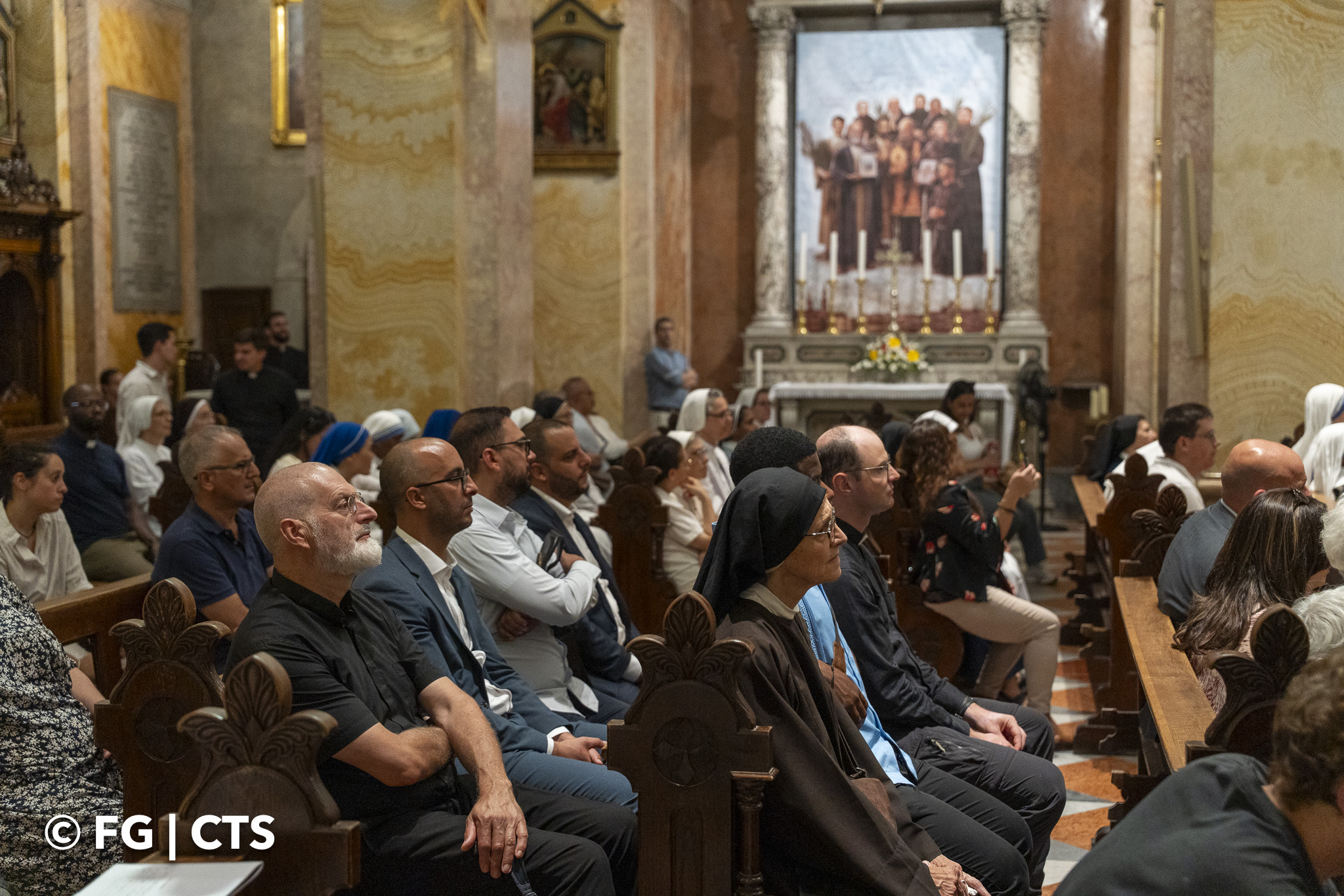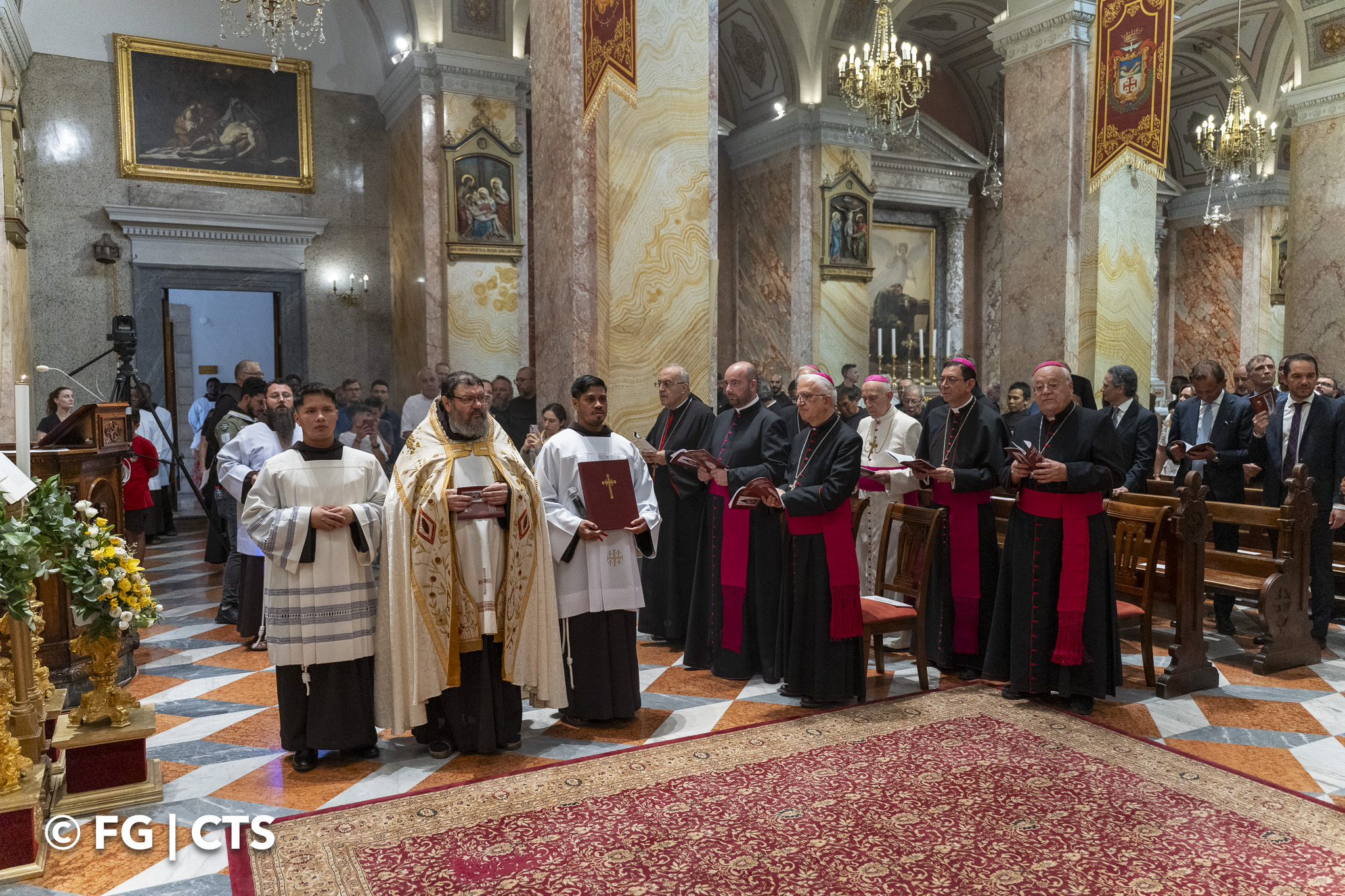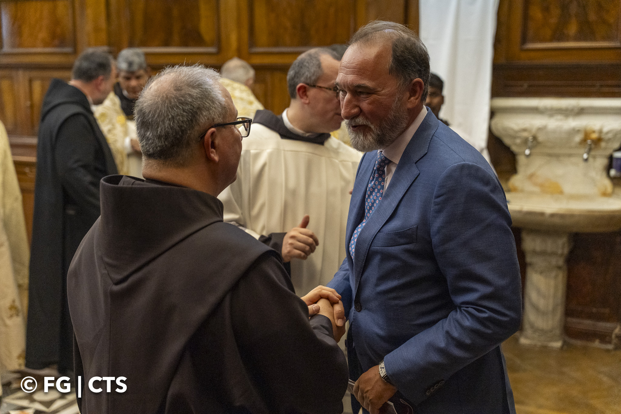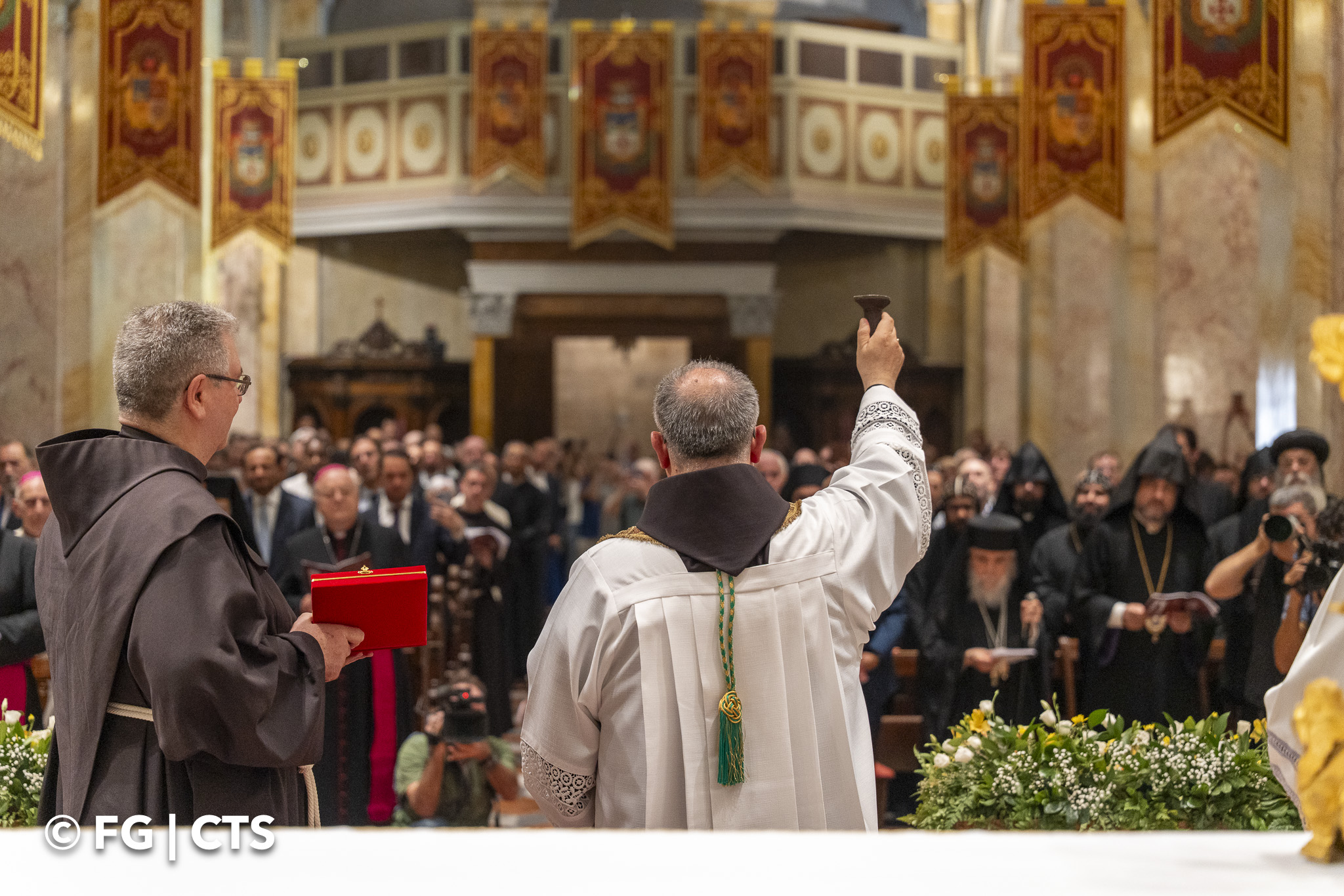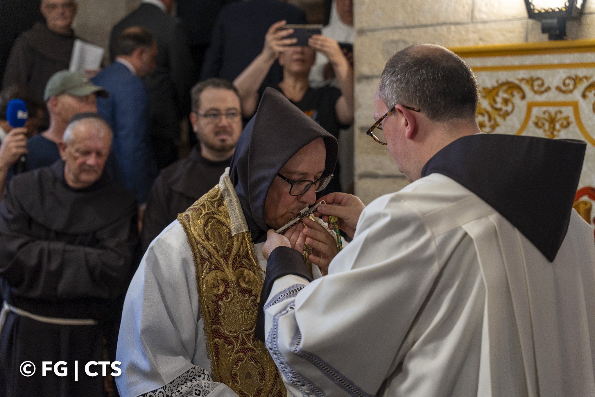 Upon reaching the entrance of the Saint Saviour convent, Br. Francesco was received by the Vicar of the fraternity, Br. Piermarco Luciano, who vested him with the stole and cross. After blessing those present with holy water, the new Custos entered the church.