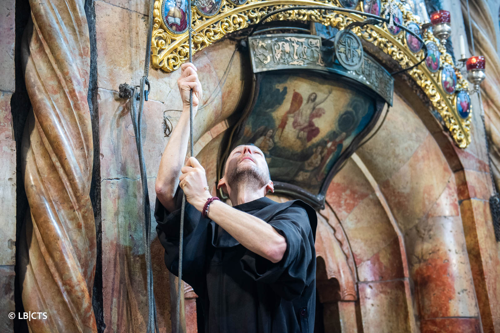 Due to the Status Quo, which regulates the celebrations between the various Christian confessions which share the space of the Basilica, the Vigil in Jerusalem takes place earlier than the rest of the Catholic world. This gives the celebration a unique character, to the extent that it is considered the ”mother of all vigils.”