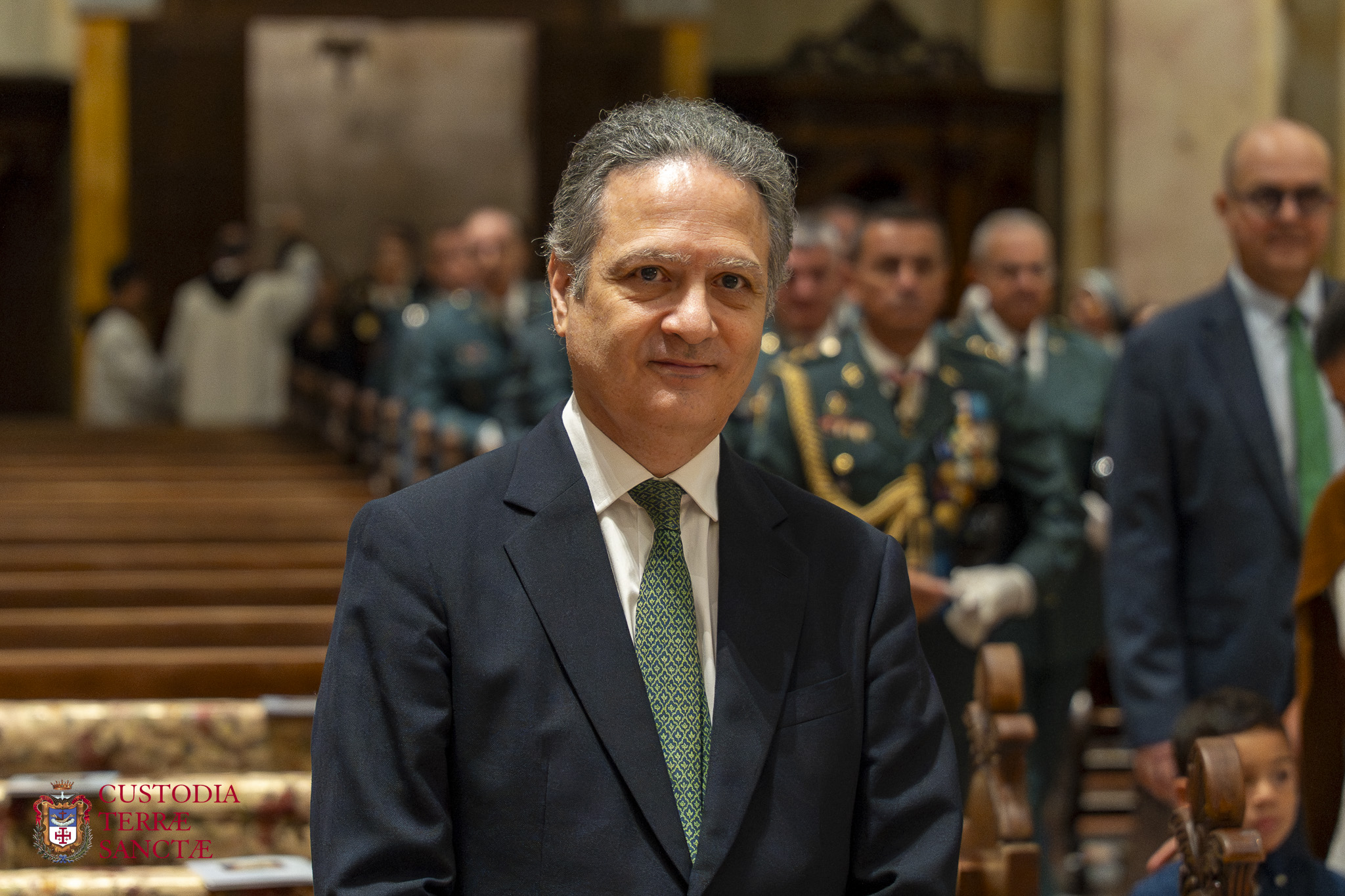 As is tradition, the Spanish Consul General in Jerusalem, José Javier Gutiérrez Blanco-Navarrete, attended the Mass, accompanied by his wife Rebekah Kosinski. Also present were members of the diplomatic corps and representatives of the Spanish Guardia Civil, of whom the Virgin of the Pillar is patroness and protector. The consul was received at the church door and received the blessed water in his hands.