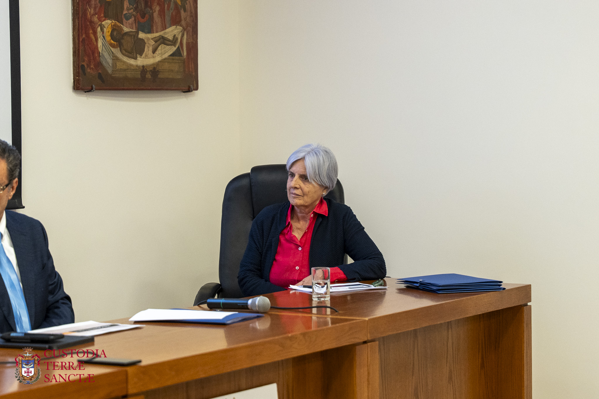 La profesora Francesca Romana Stasolla, docente de la Universidad "La Sapienza" de Roma y coordinadora científica de los trabajos de investigación y restauración, ilustró las principales fases del proyecto, los descubrimientos realizados y las perspectivas para la conclusión de la intervención.