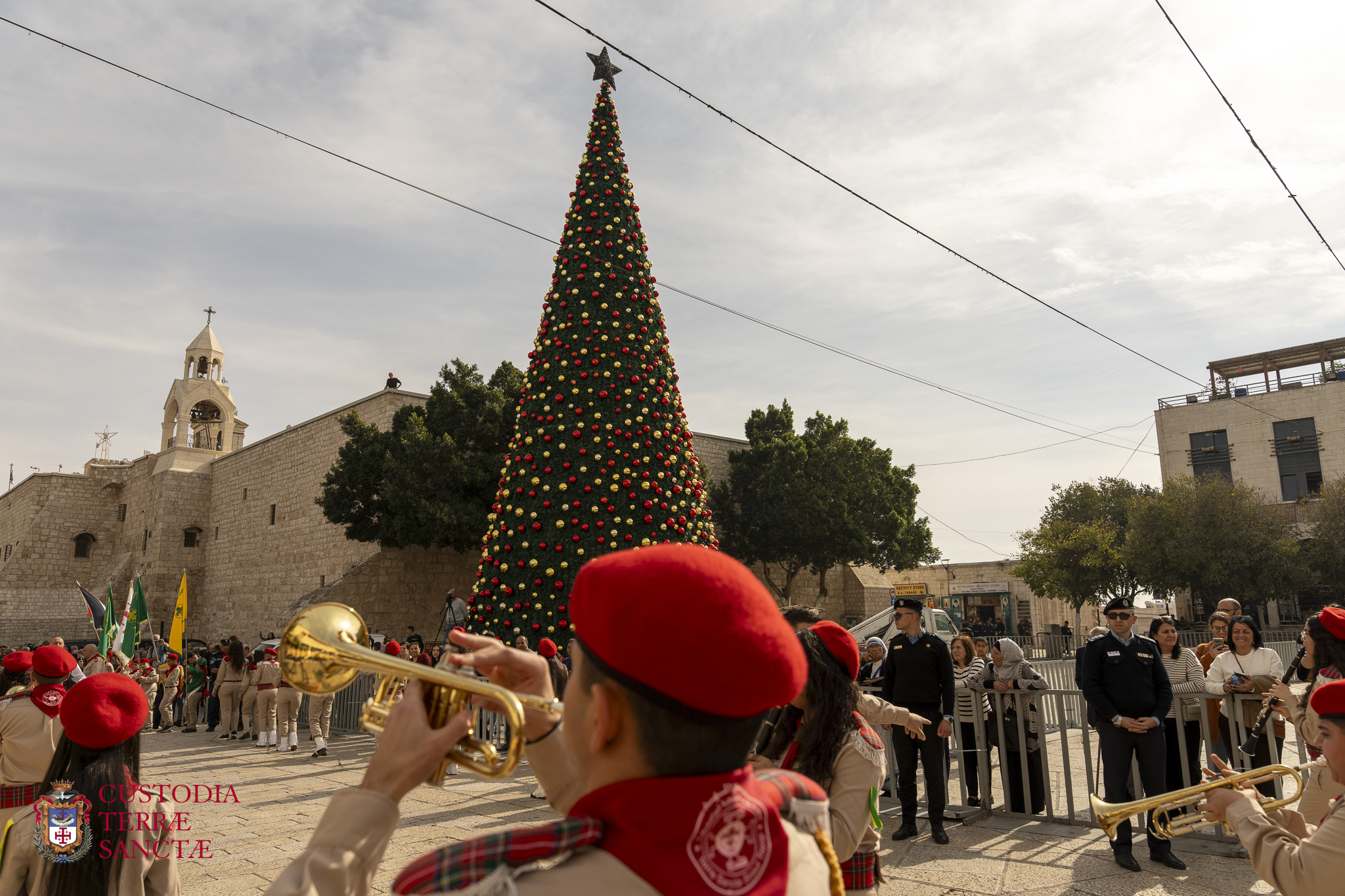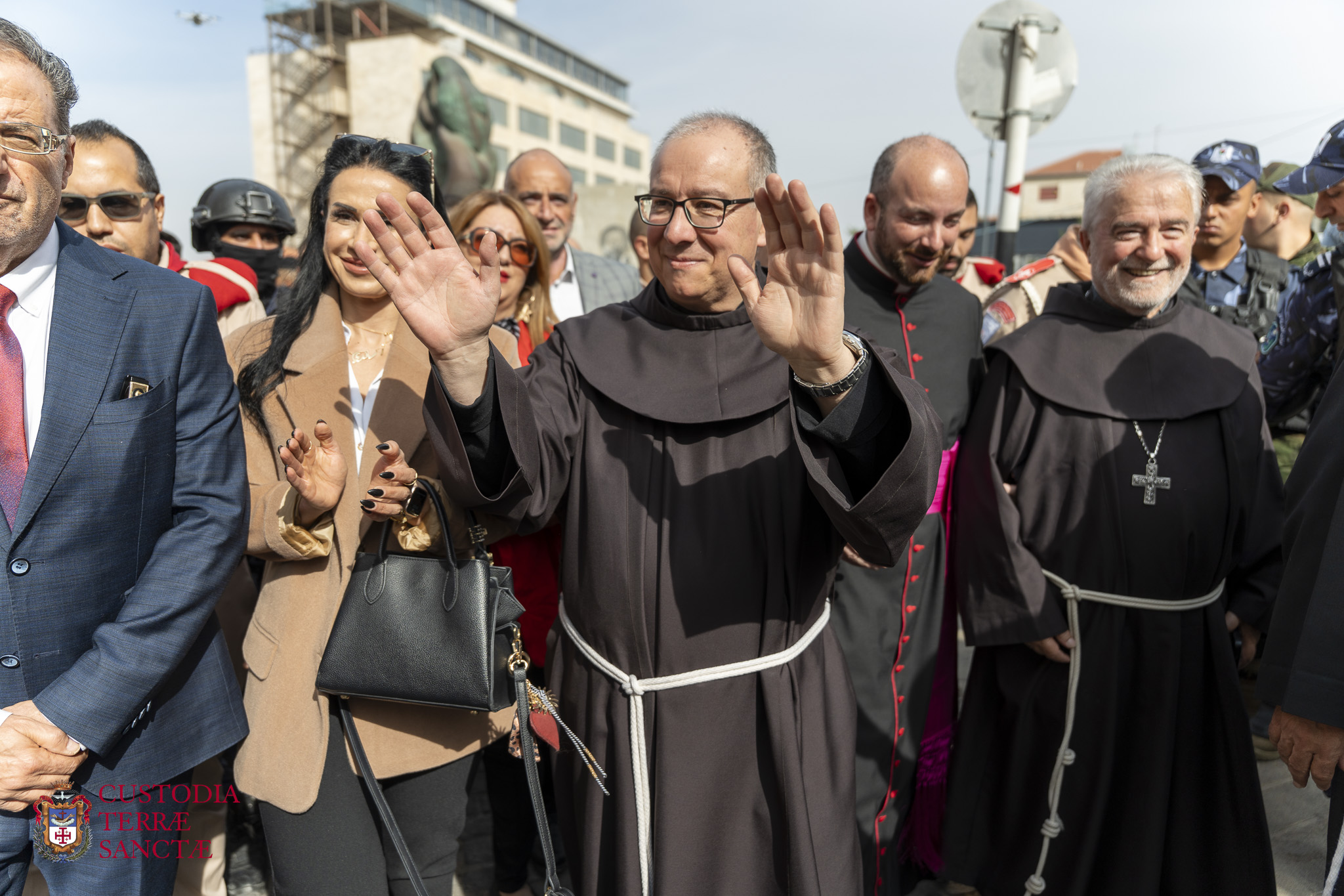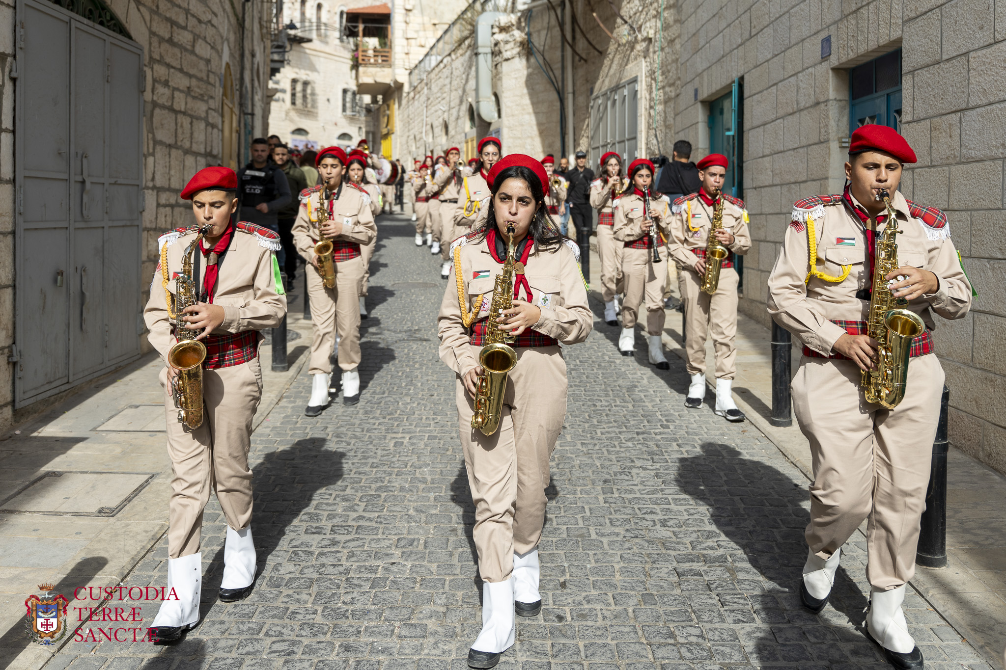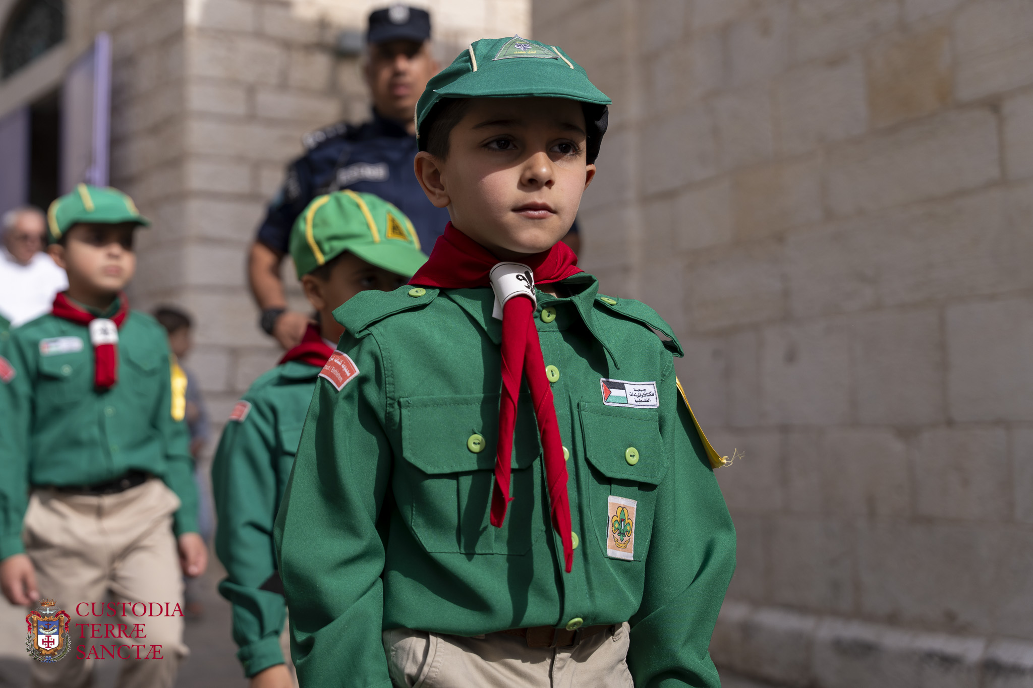 Arrivé au centre "Action Catholique" de Bethléem, les autorités civiles et la communauté locale ont accueilli le Custode et les frères de la Custodie de Terre Sainte. Les scouts ont alors commencé le cortège avec la fanfare et ont accompagné le Custode le long de Star Street jusqu’à la Basilique de la Nativité.