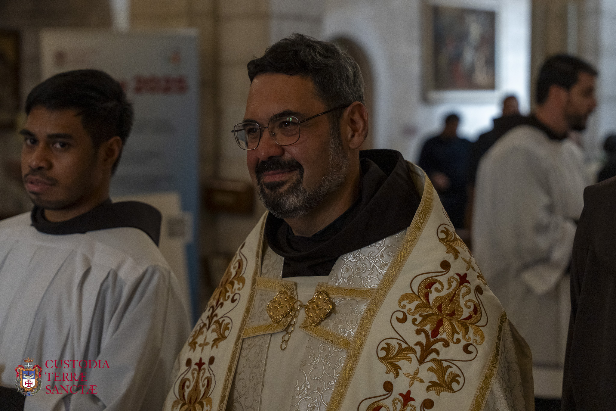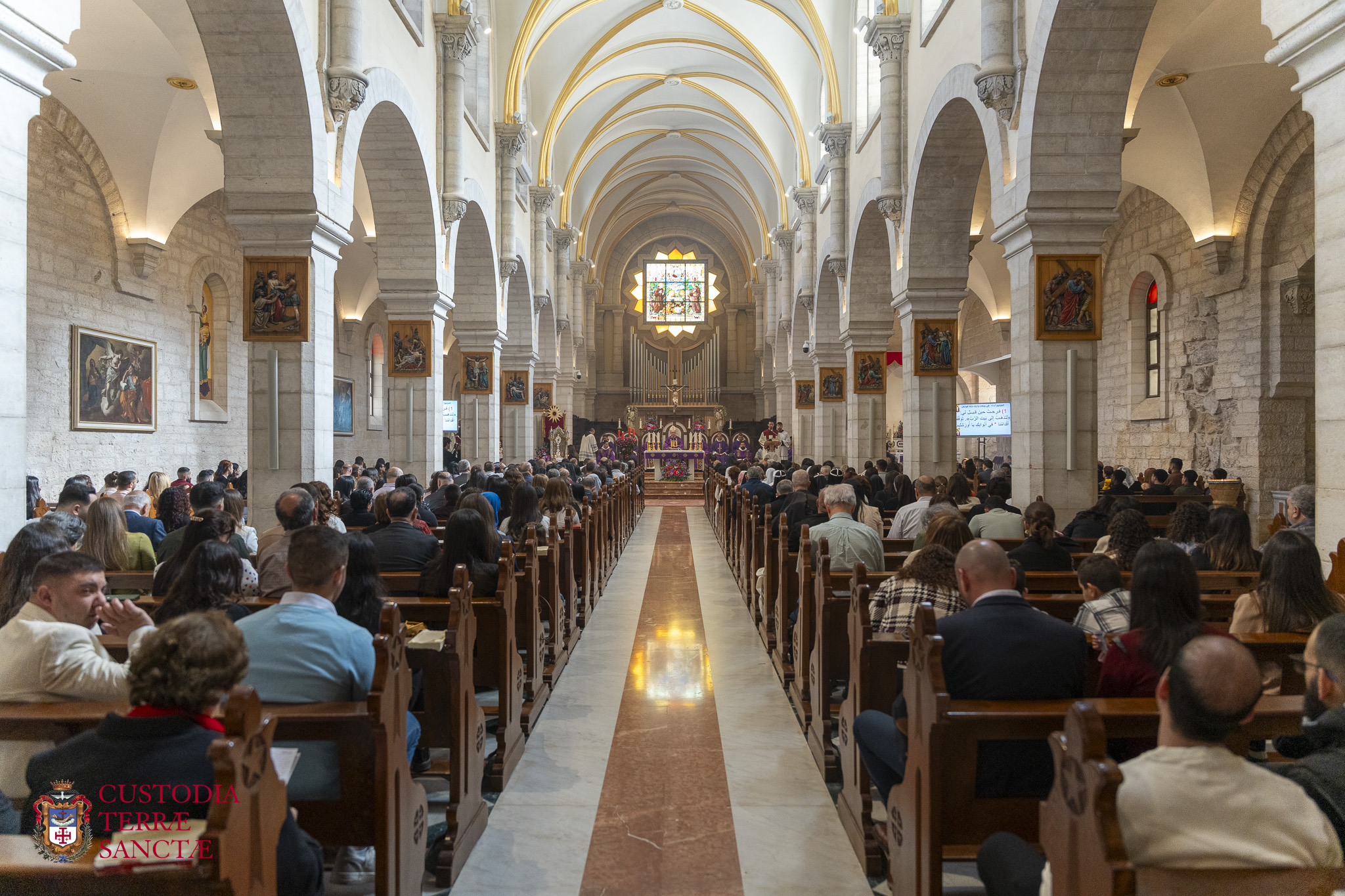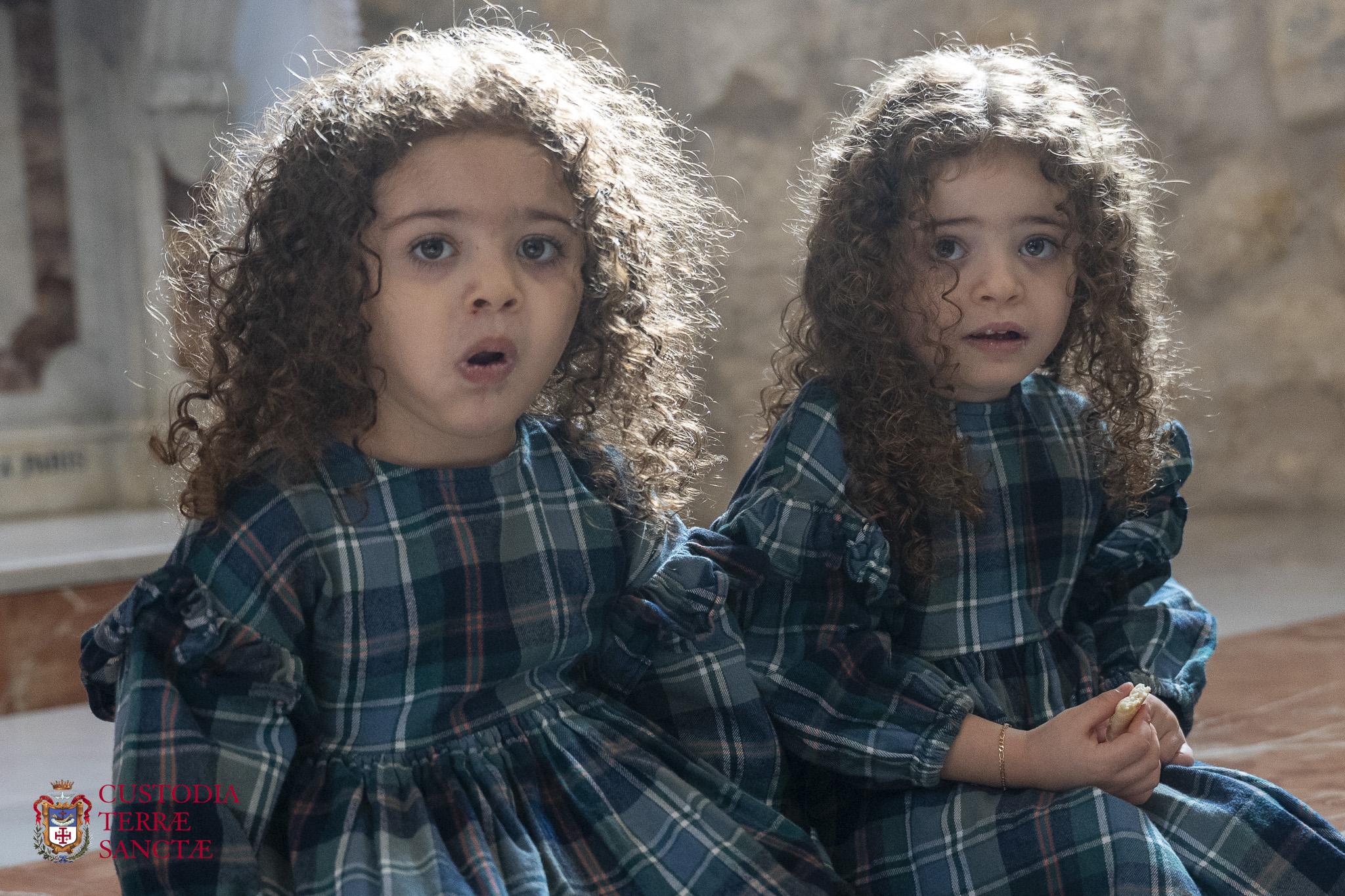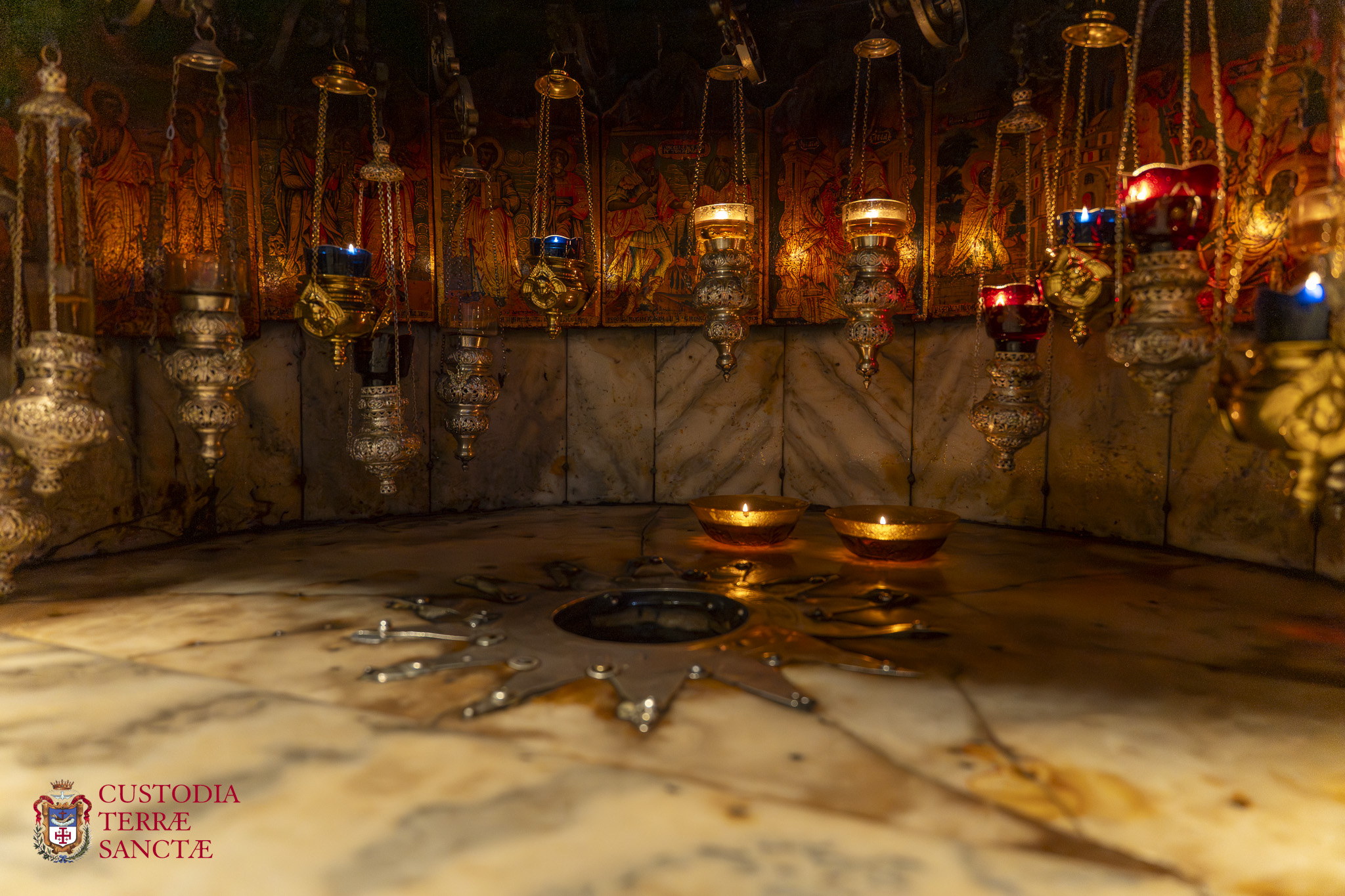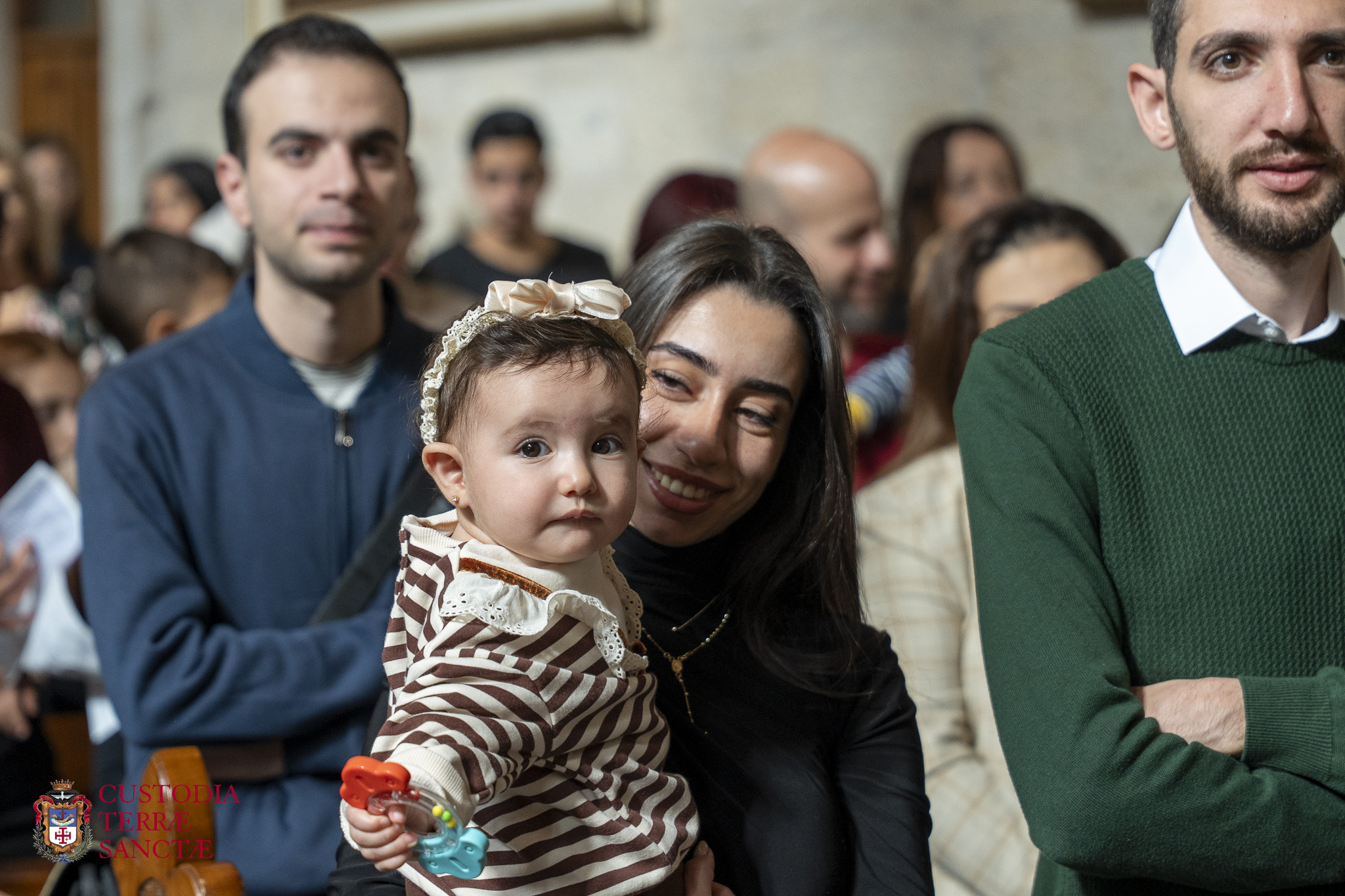 Arrivé sur la Place de la Nativité, accueilli par les étudiants du Terra Santa College de Bethléem ainsi que par d’autres autorités civiles, citoyens et fidèles locaux, le Custode a ensuite fait son entrée dans la Basilique de la Nativité par la porte qui mène à la Basilique Orthodoxe, où il a été reçu par les autorités des Églises Orthodoxes Locales.