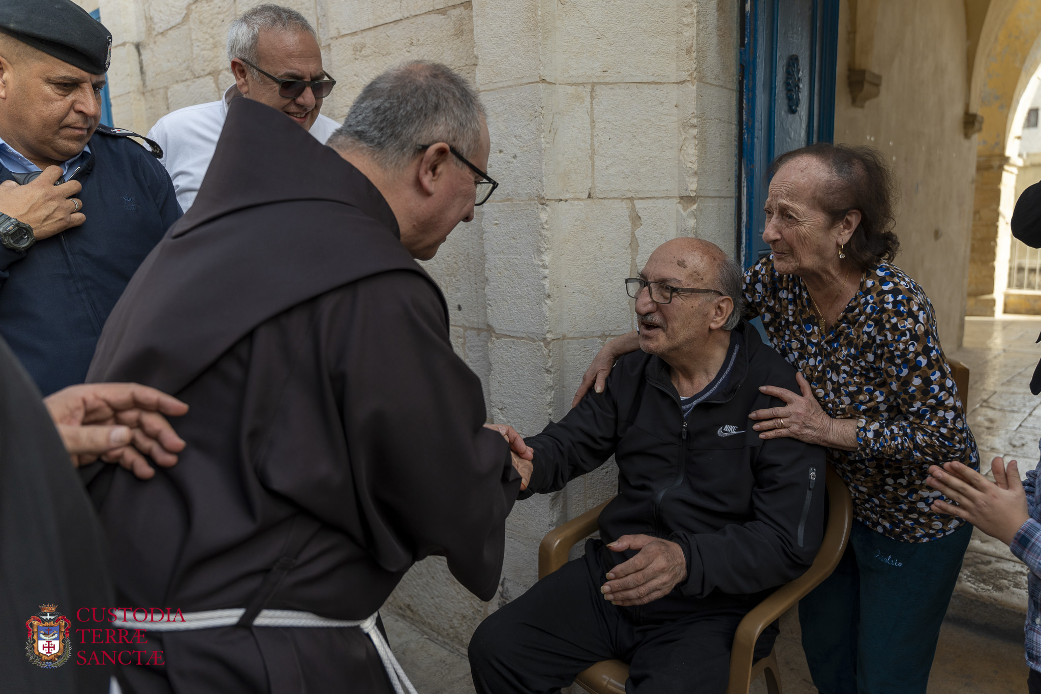 Là, le Custode a salué la communauté locale et accordé quelques interviews. Le cortège s’est ensuite dirigé vers le checkpoint de Bethléem, par lequel il entre selon les accords du Statu Quo.