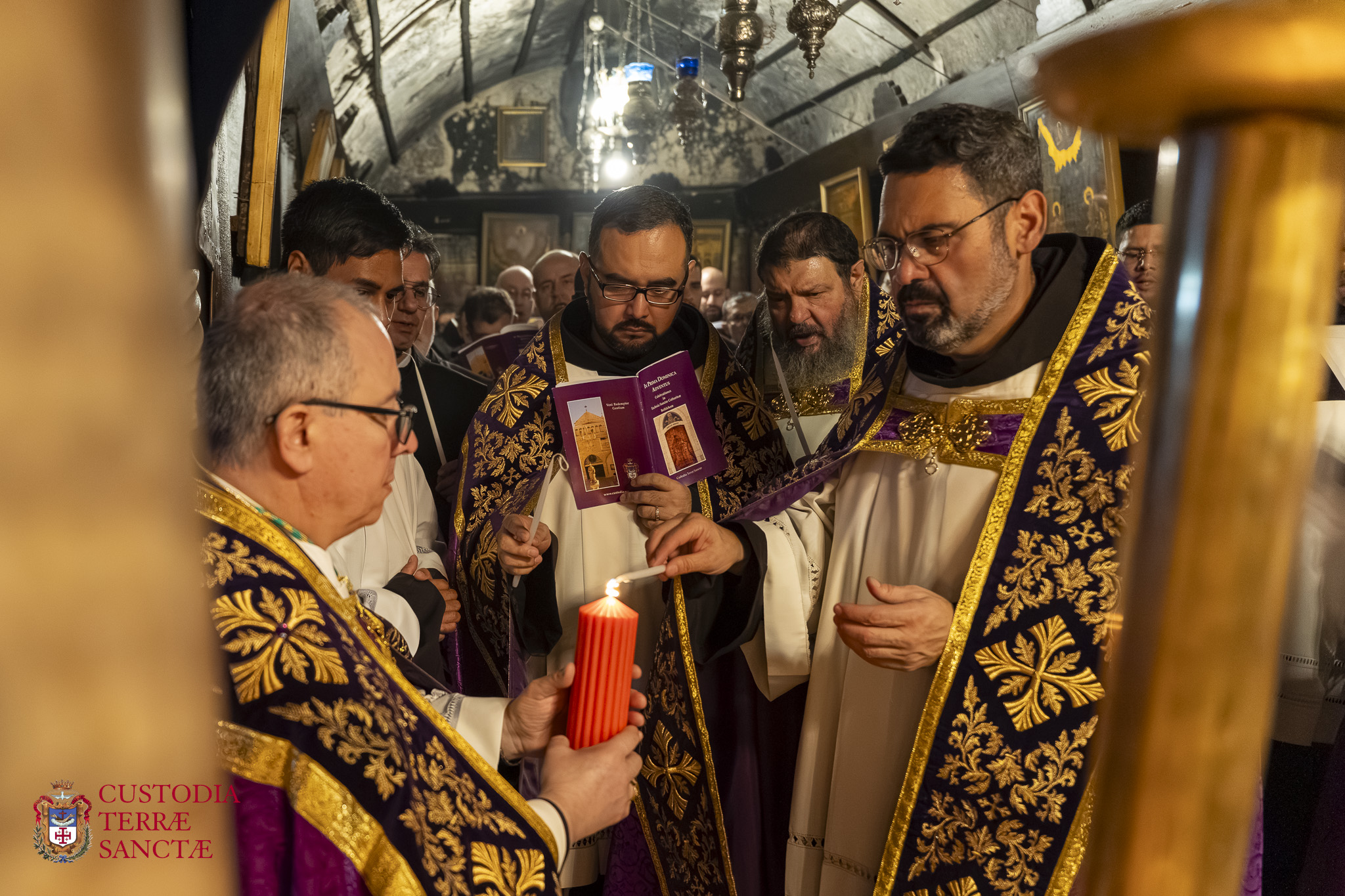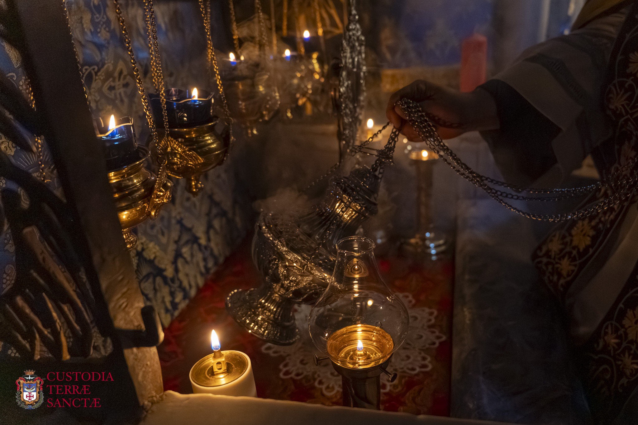 En début d’après-midi, les frères franciscains ont prié les premières Vêpres, présidées par le Père Custode. La procession s’est ensuite poursuivie jusqu’à la Grotte de la Nativité, où le Custode a encensé l’étoile d’argent qui indique l’endroit où, selon la tradition, le Sauveur est né. Il a ensuite encensé l’autel latin et la mangeoire, dans un climat de silence et de recueillement, en vue de l’Avent que nous sommes appelés à vivre dans les prochaines semaines.