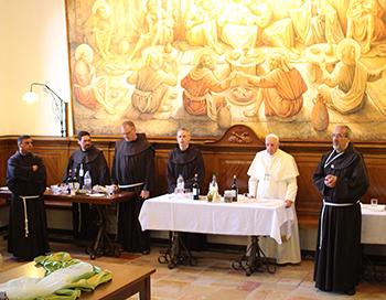 Papa Francesco, cambiando il programma ufficiale, ha pranzato con tutti i francescani a San Salvatore. Nessun Papa lo aveva mai fatto prima, nonostante San Salvatore sia la casa centrale di tutti i francescani della Terra Santa e i Papi abbiano celebrato nei Santuari custoditi dai Figli di Francesco. È stato un momento di felicità immensa. Gli applausi dei 95 frati presenti al refettorio, molti di questi giovani, si sono sentiti in tutta Gerusalemme. Il pranzo è stato molto semplice. Abbiamo potuto esperimentare la semplicità, la “minorità”, come ripete spesso Papa Francesco. Nelle fotografie si può vedere l’amore del Papa per tutti e anche la sua semplicità e allegria. Cosa volete che vi dica? Per me è stato come se grande amico fosse venuto a visitarci. E con lui è arrivata la felicità. La gioia del Papa diceva tutto. E mi sono sentito un po’ più francescano.