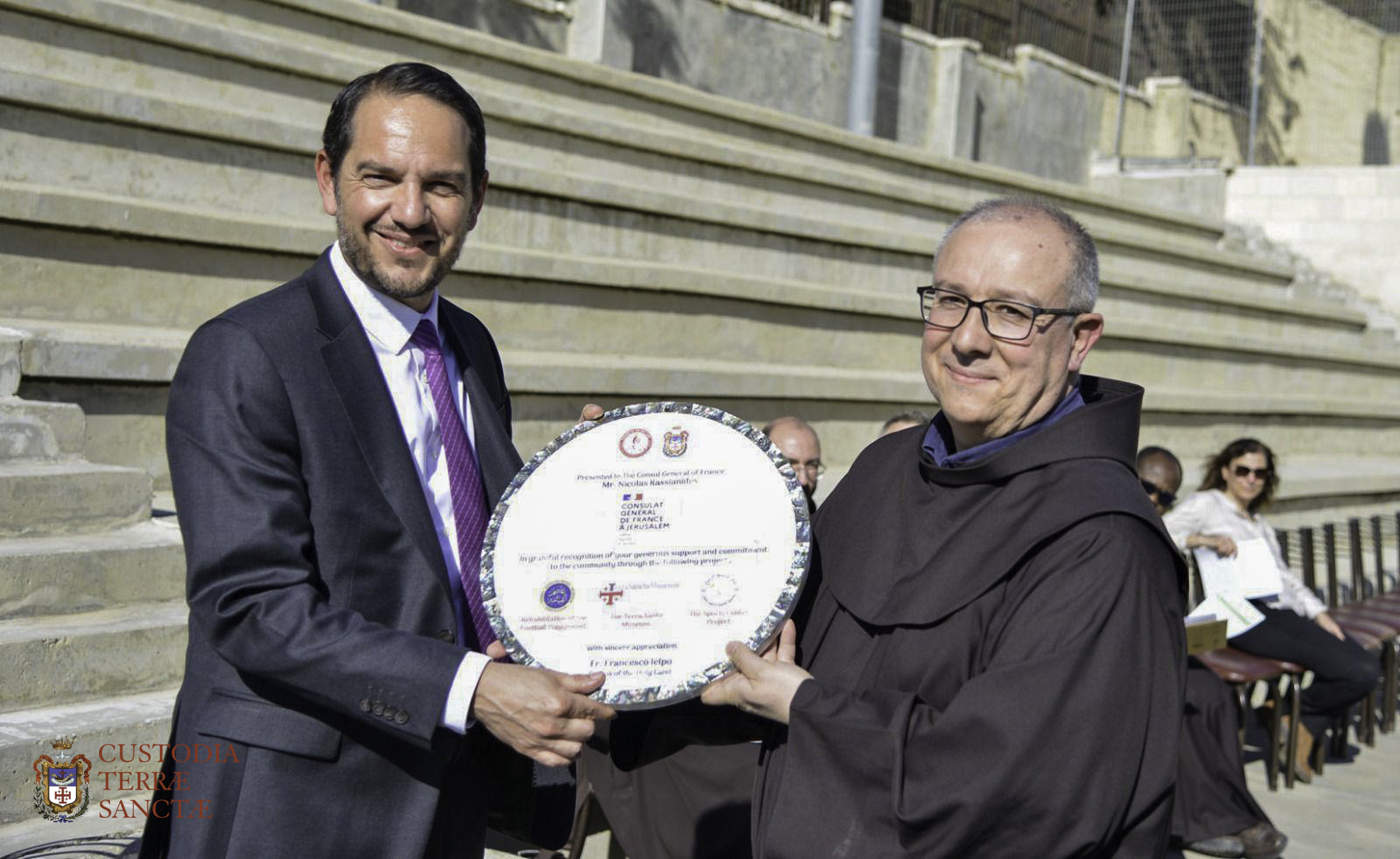 Un sentito ringraziamento è stato rivolto a tutti coloro che hanno reso possibile il progetto, tra cui il Consolato Francese, l’Agence Française de Développement e una organizzazione non governativa palestinese attiva nello sviluppo locale. Un ringraziamento particolare è andato al responsabile delle scuole di Terra Santa, fra Ibrahim Faltas, al parroco fra Johnny Jallouf e al suo predecessore fra Raffaele Tayem e ai tanti collaboratori che instancabilmente hanno lavorato per portare a termine l’audace progetto.