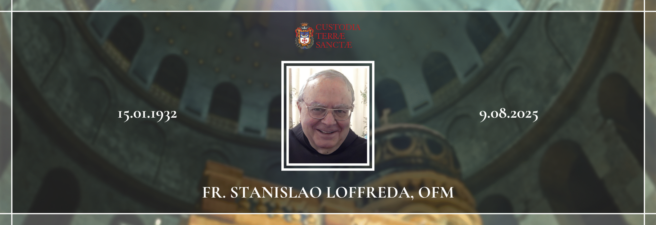 Con profonda commozione ricordiamo Padre Stanislao Loffreda, nato a Monteprandone (Italia), insigne biblista e archeologo, per decenni anima dello Studium Biblicum Franciscanum di Gerusalemme, di cui fu anche direttore.