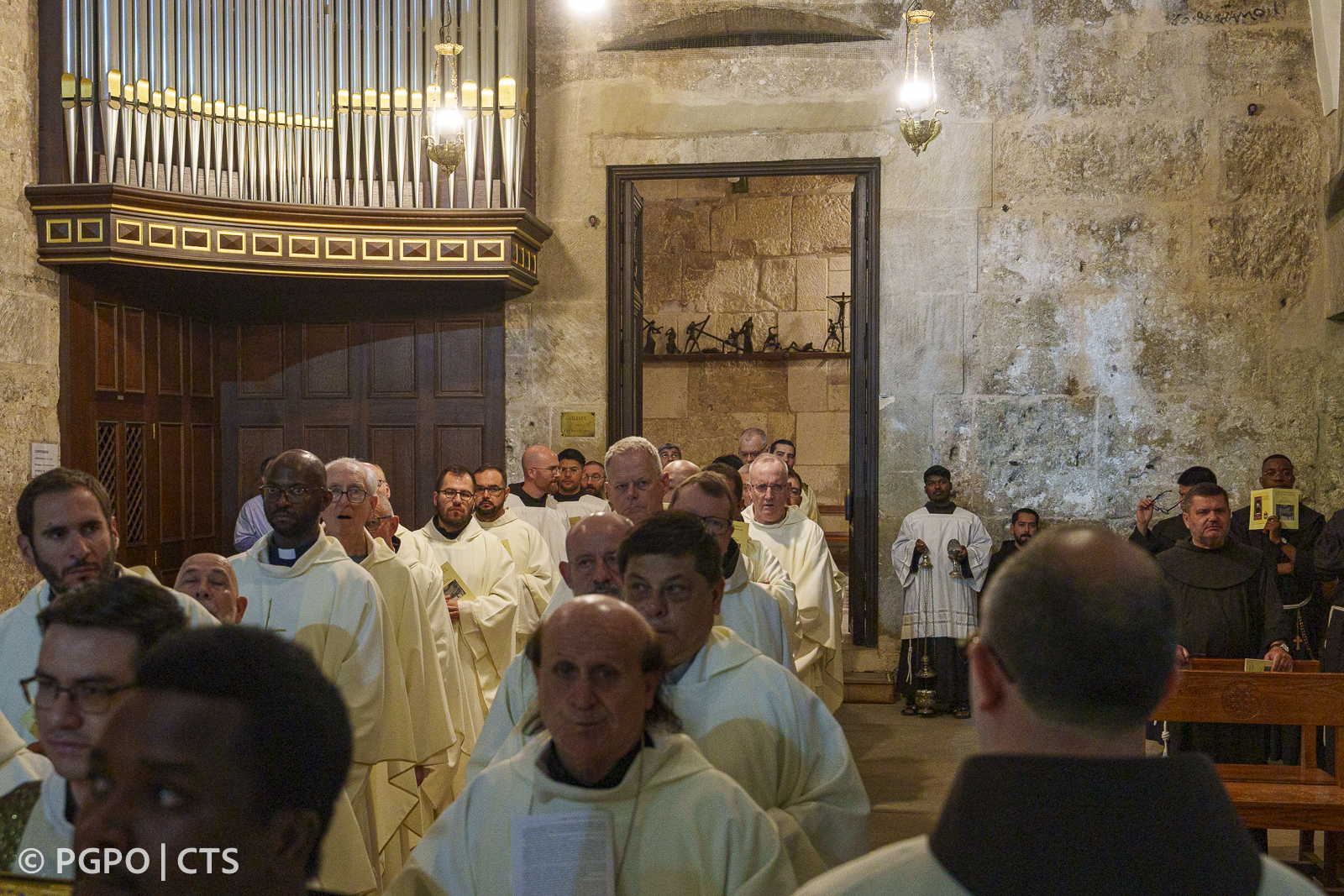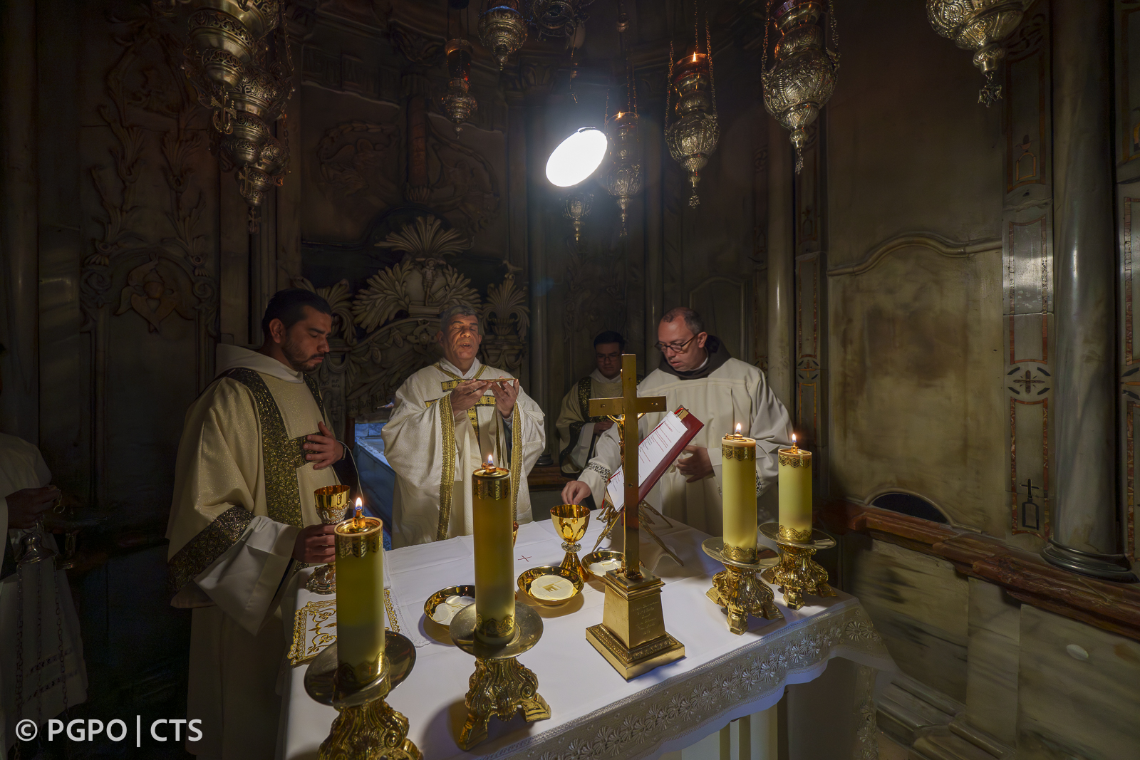 Ele então lembrou o compromisso da Custódia franciscana, que há mais de oitocentos anos guarda o Santo Sepulcro: "Nós o guardamos com oração, com escuta, com compaixão por cada pessoa que atravessa este limiar em busca de luz."